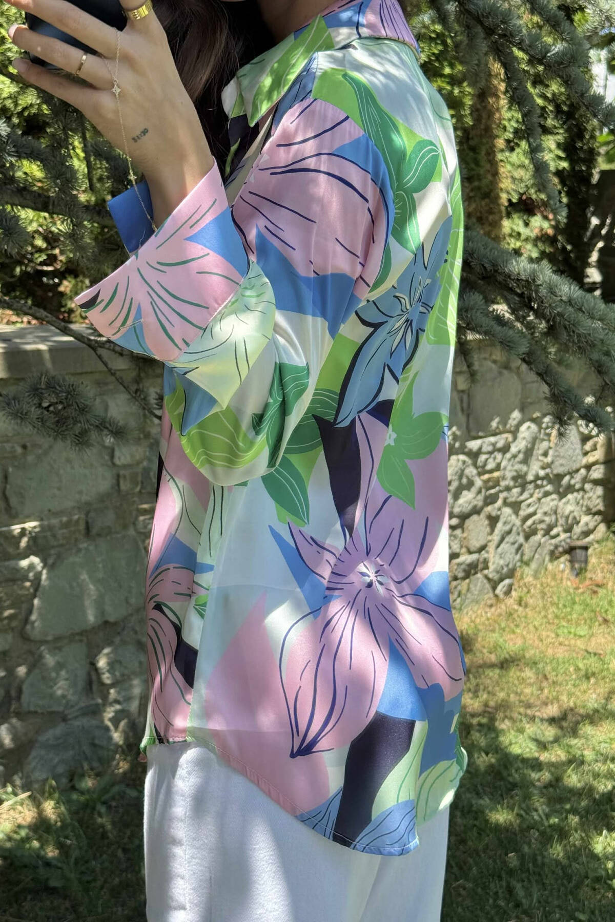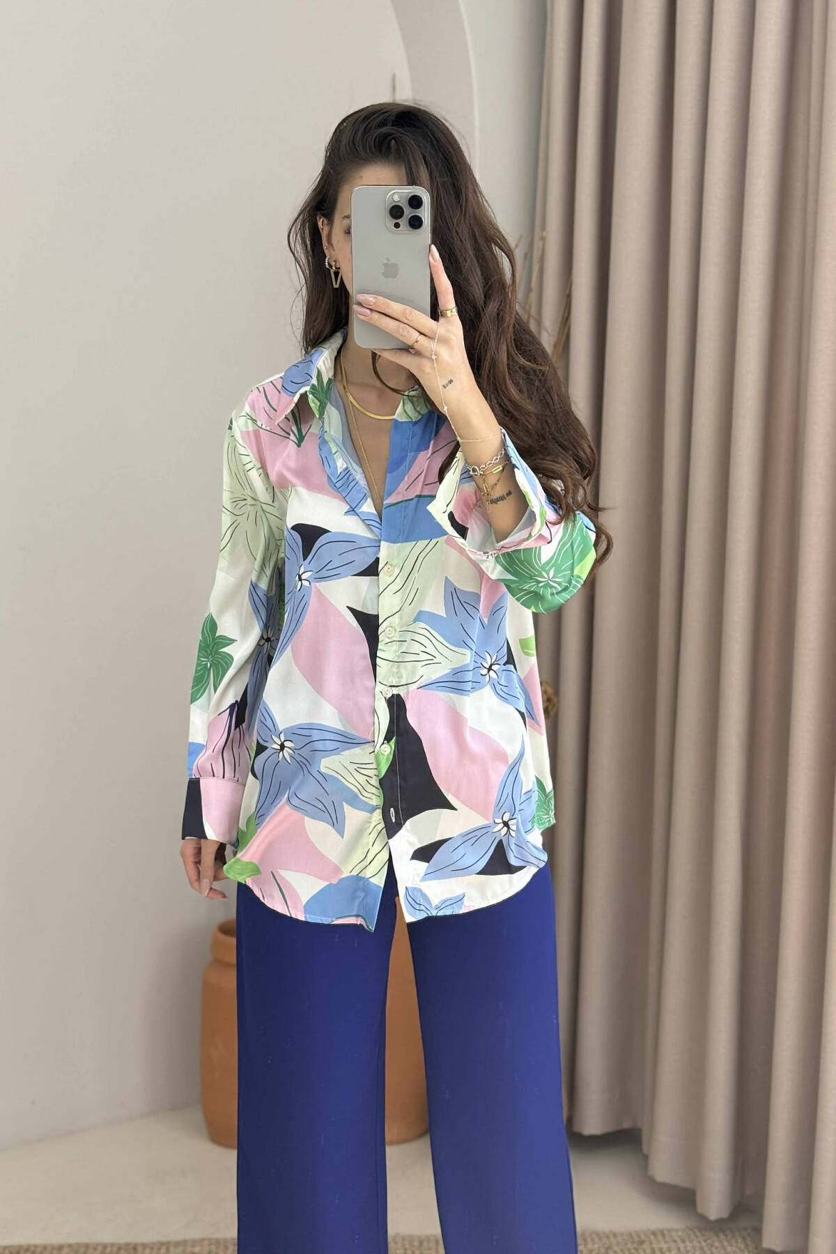 KËMISHË ME DIZAJNE ABSTRAKTE PËR FEMRA NË NGJYRËN ROZË+JESHILE