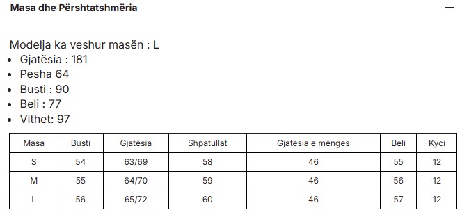 KEMISHE ME MENGE TE GJATA PER FEMRA NE NGJYRE LEJLA TE ZBARDHUR