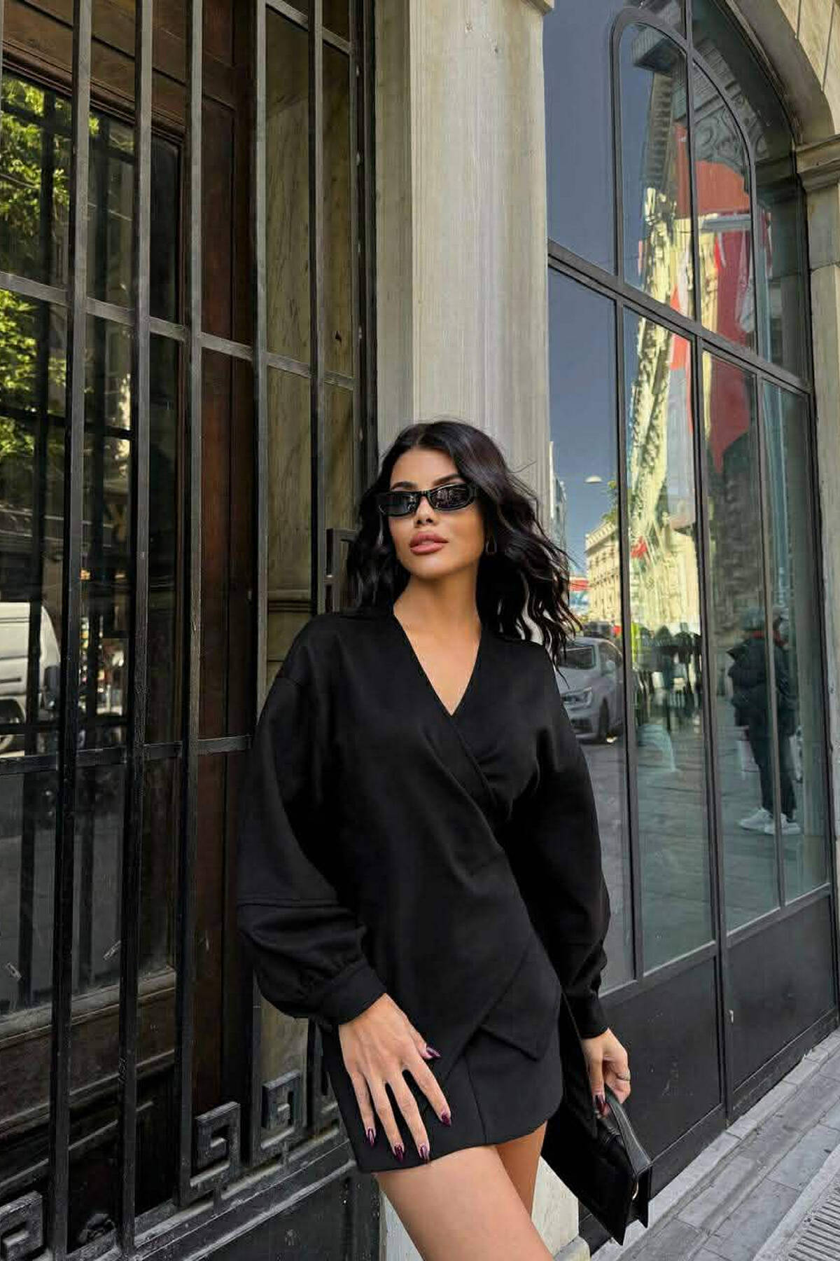 ONE COLOR LONG SLEEVE WOMEN SHIRT BLACK/ E ZEZE