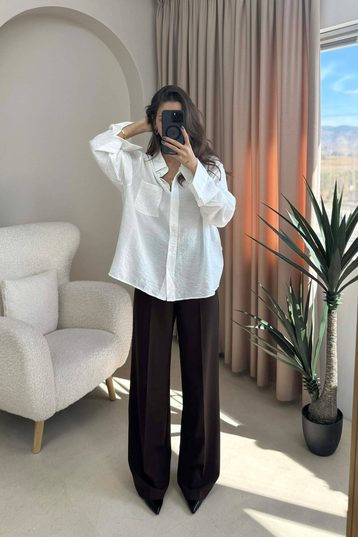 KËMISHË NJË NGJYRËSHE ME DETAJIN E NJË XHEPI PËR FEMRA NË NGJYRË TË BARDHË