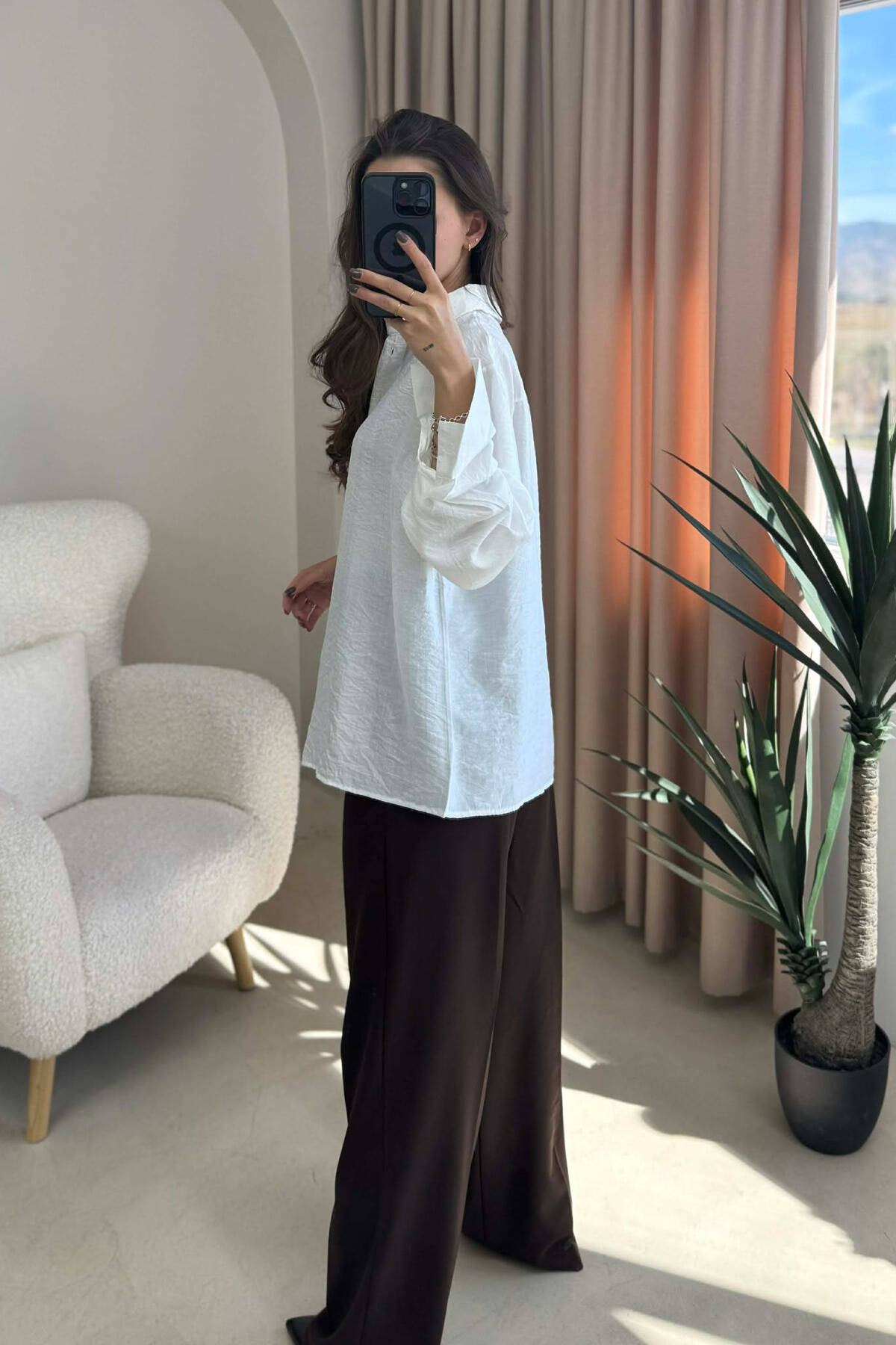 ONE COLOR LONG SLEEVE WOMEN SHIRT BROWN/KAFE