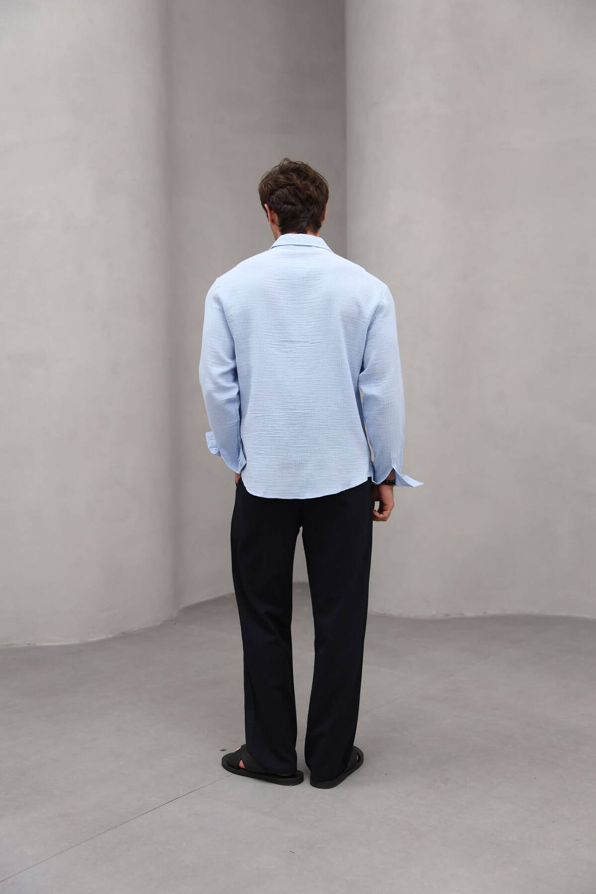 KËMISHË NJË NGJYRËSHE ME XHEP PËR MESHKUJ NË NGJYRËN BLU E ZBARDHUR