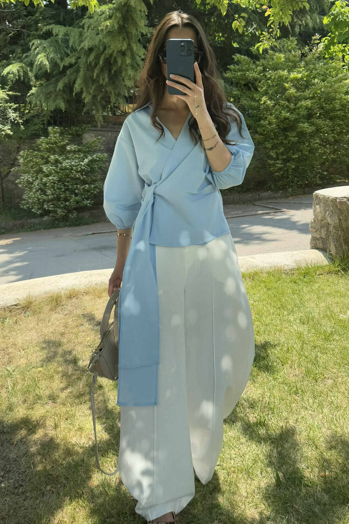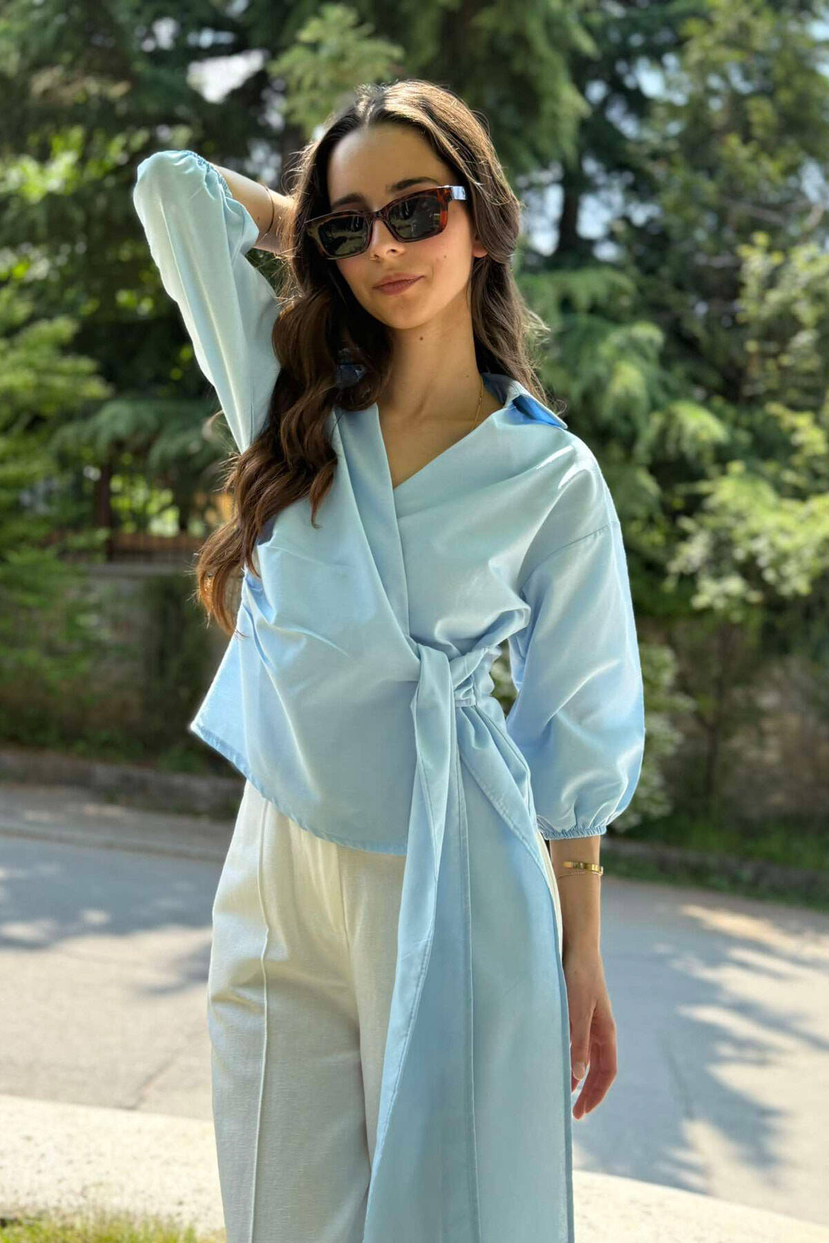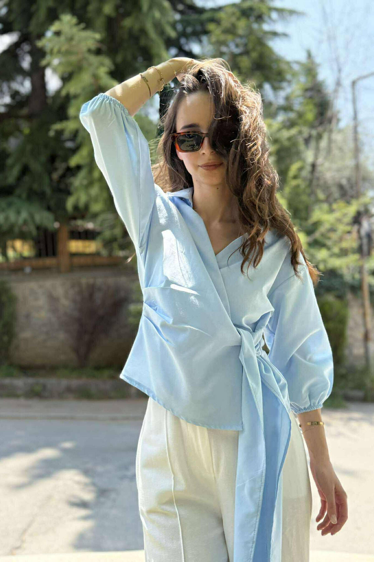 KËMISHE NJË NGJYRËSHE ME LIDHSE PËR FEMRA NË NGJYRËN BLU E ZBARDHUR