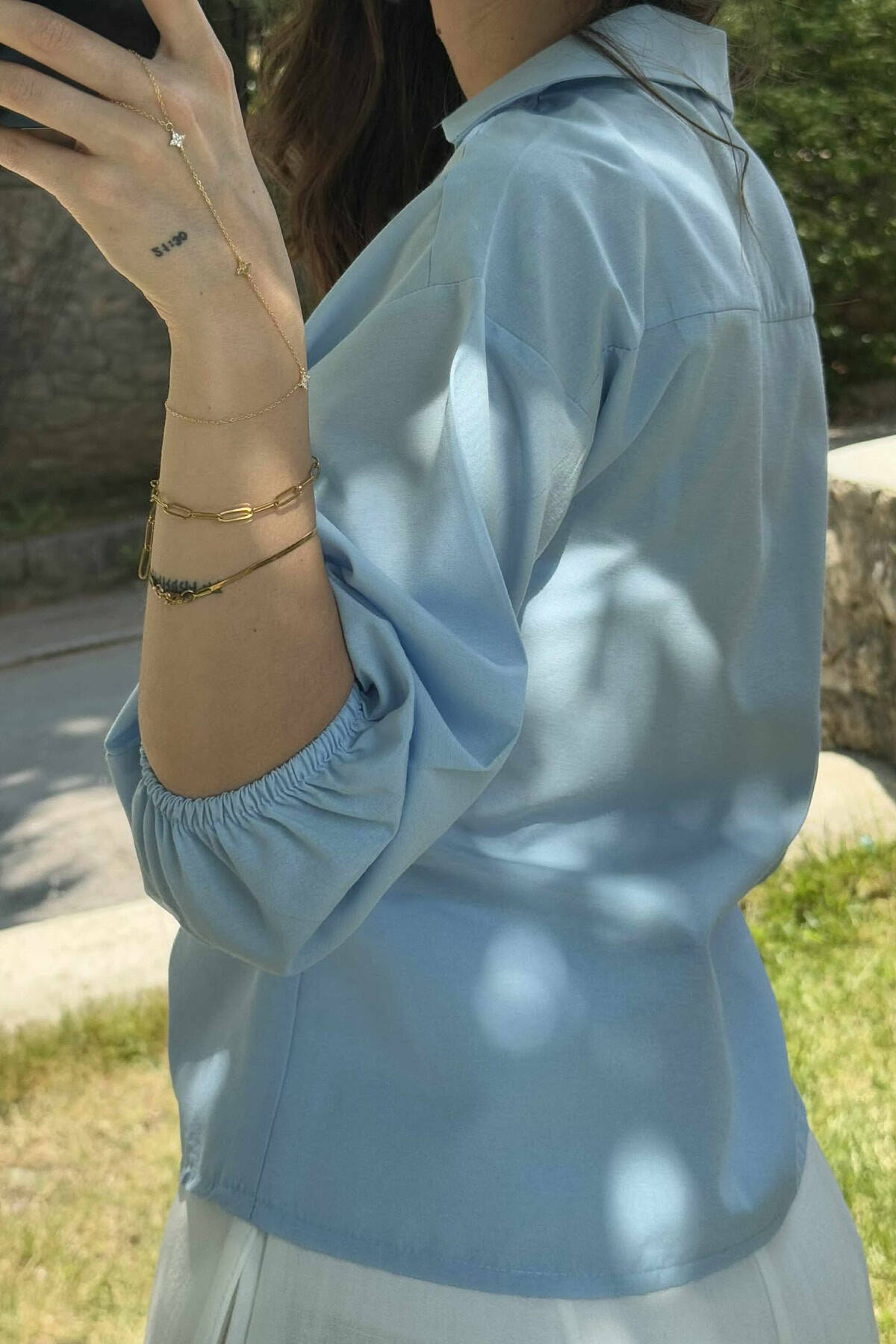 KEMISHE ME BUTONA GOLD PER FEMRA NE NGJYRE BLU TE ERRET