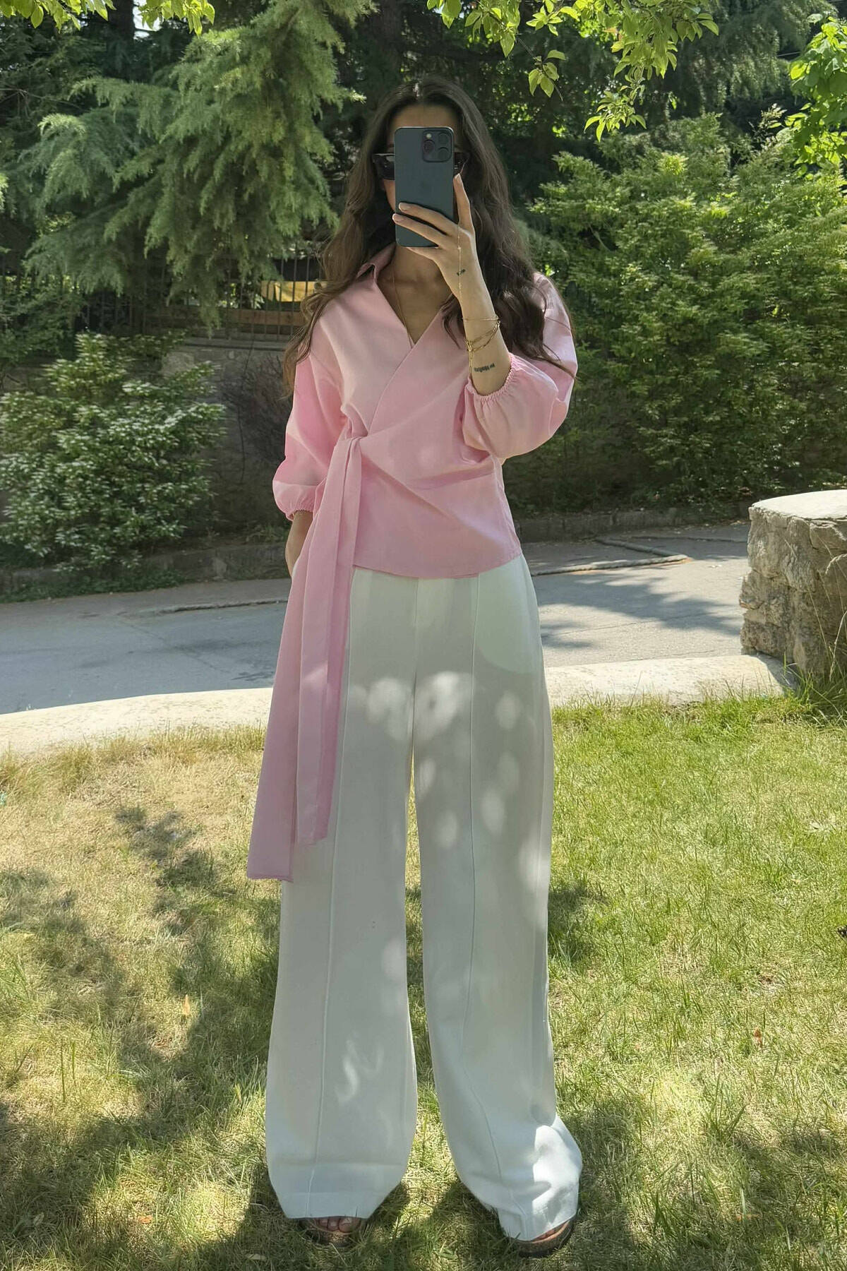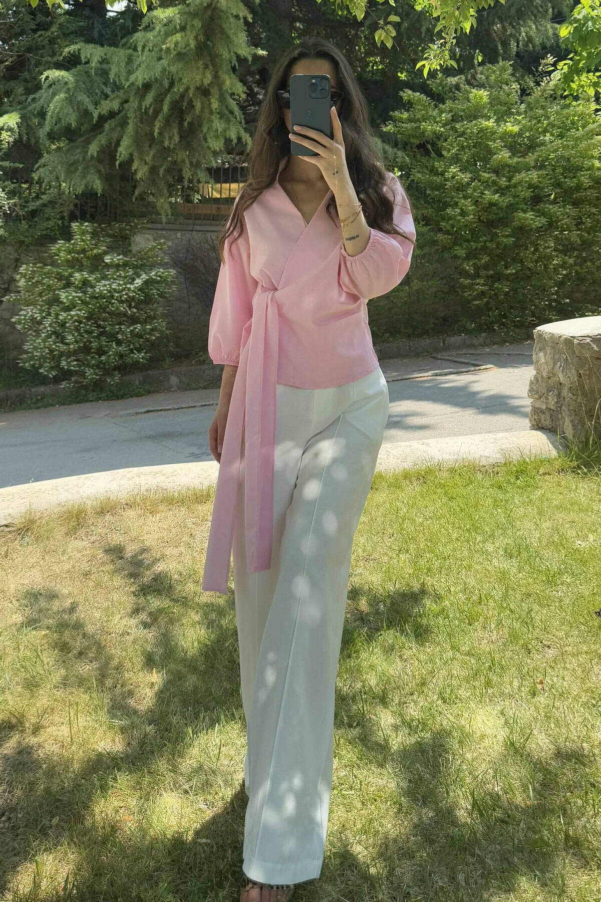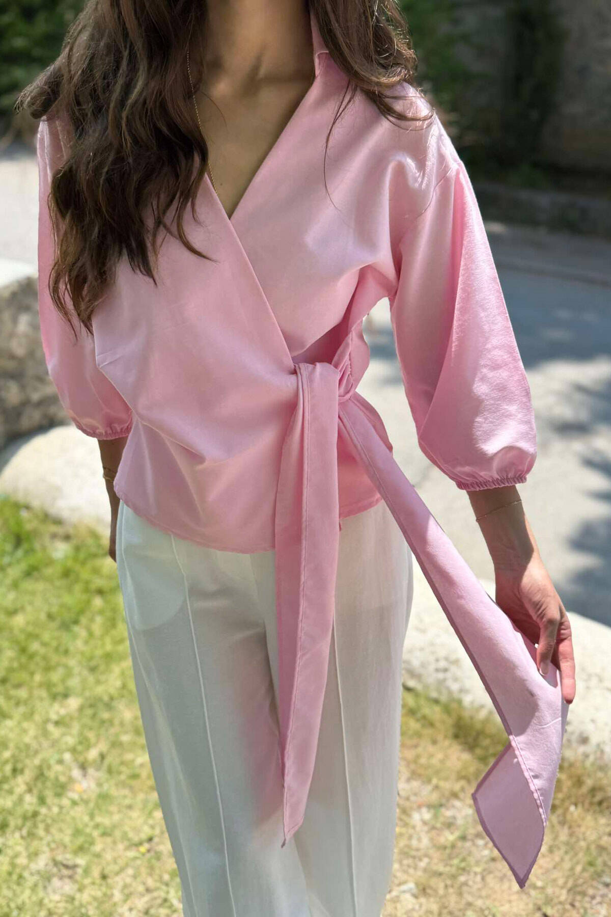 KËMISHE NJË NGJYRËSHE ME LIDHSE PËR FEMRA NË NGJYRËN ROZË