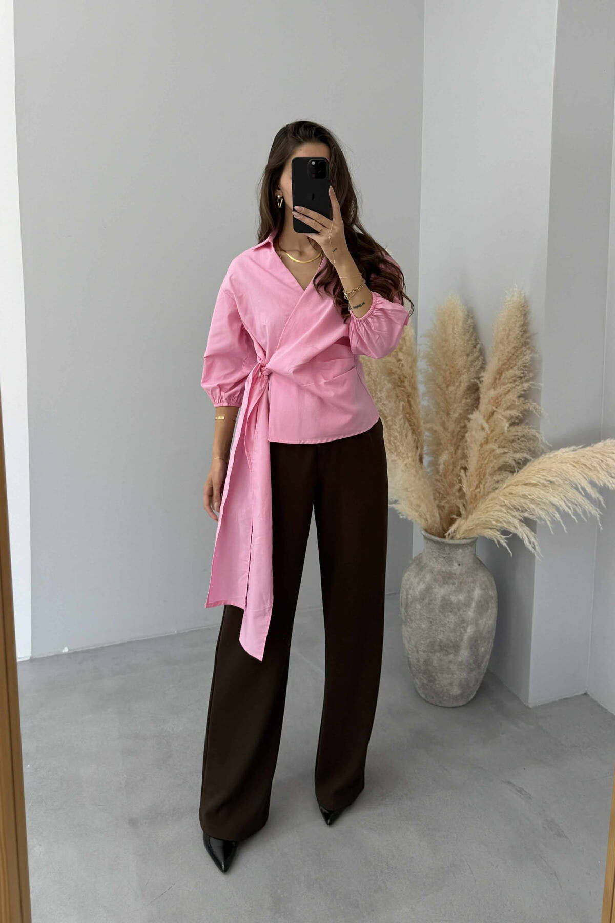 KEMISHE NJE NGJYRESHE ME DETAJIN E SHALLIT PER FEMRA NE NGJYRE KAFE