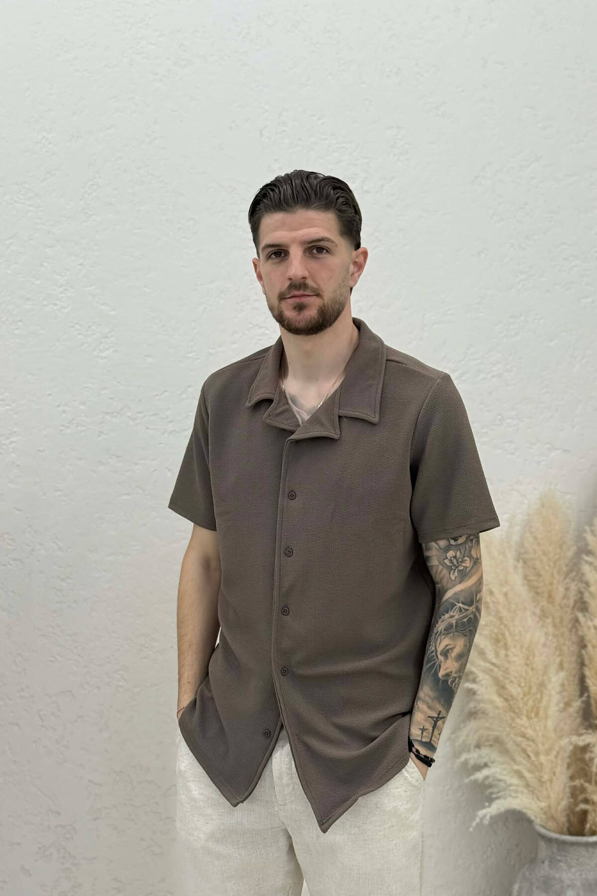 KEMISHE NJE NGJYRESHE ME TEKSTURE PER MESHKUJ NE NGJYRE KAFE TE ZBARDHUR
