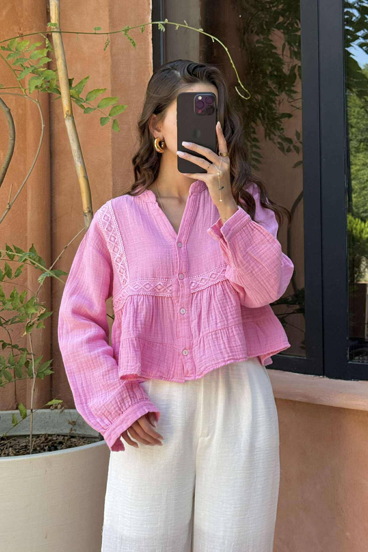 ONE COLOR LACY DESIGN WOMEN SHIRT WHITE-E BARDHE