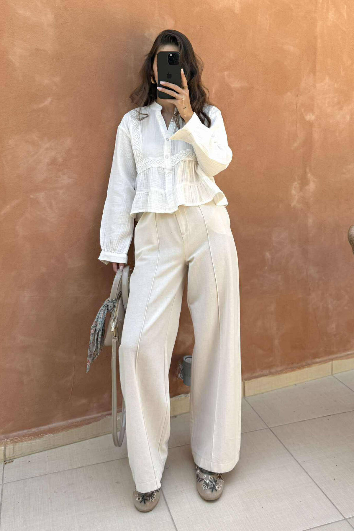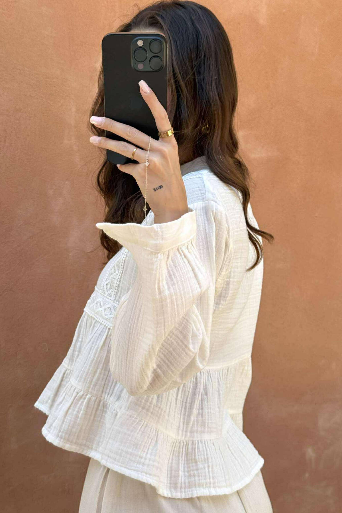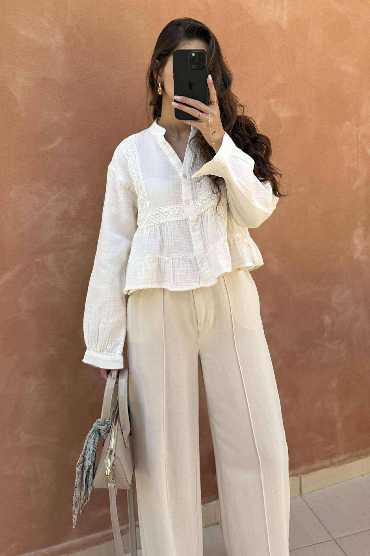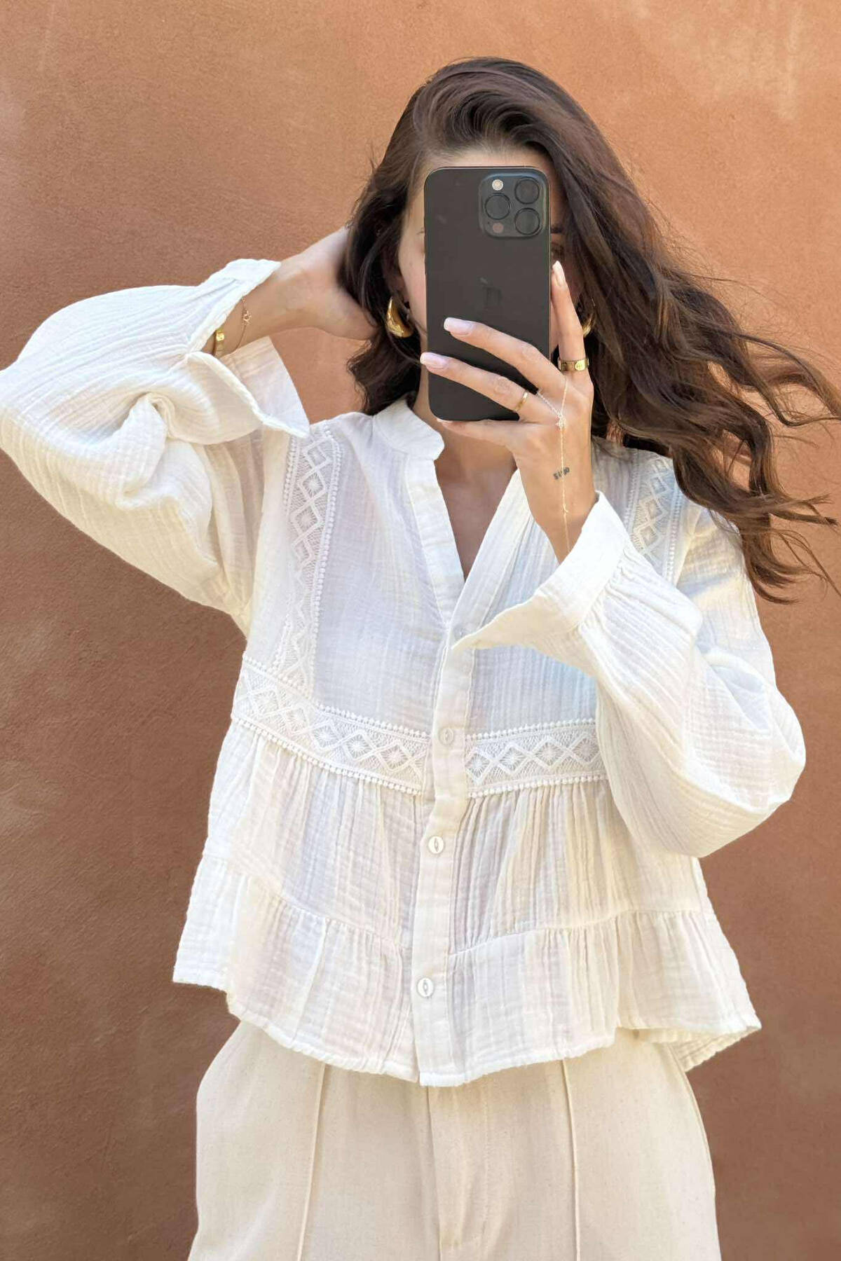 ONE COLOR LACY DESIGN WOMEN SHIRT WHITE-E BARDHE