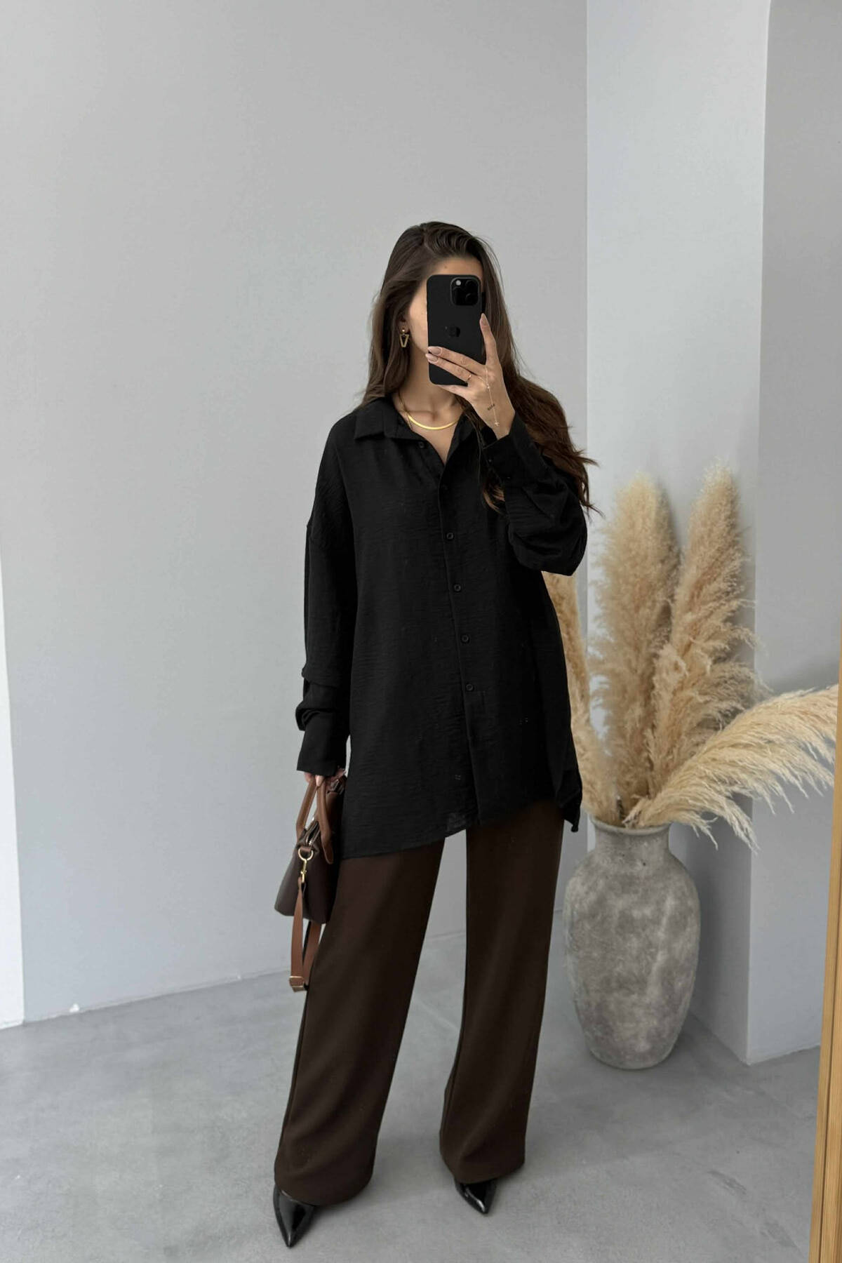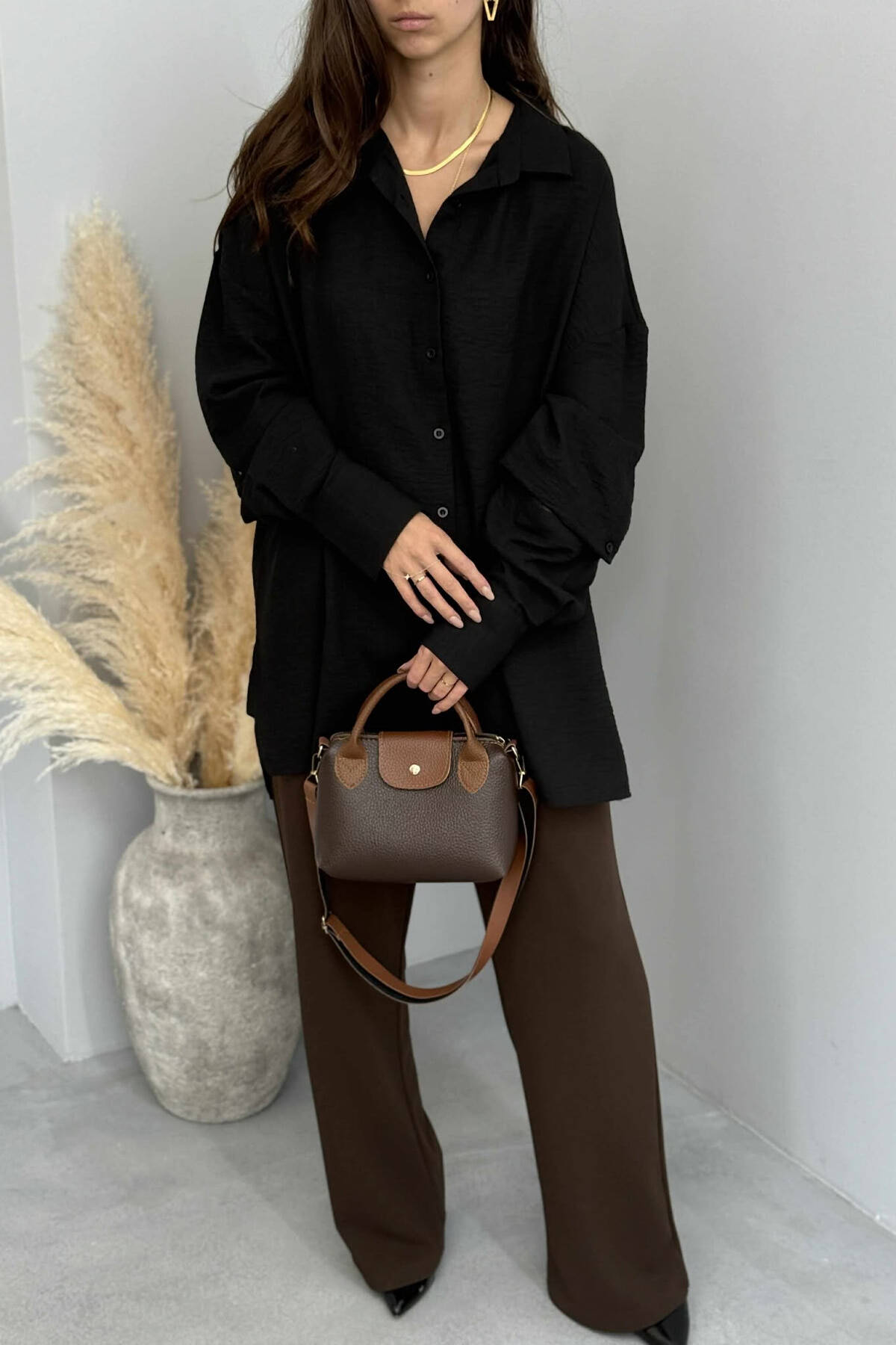 ONE COLOR LONG SLEEVE WOMEN SHIRT BLACK/ E ZEZE
