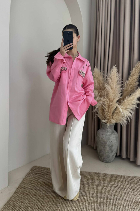 KËMISHË NJË NGJYRËSHE ME DETAJIN E GUASKAVE PËR FEMRA NË NGJYRËN ROZË