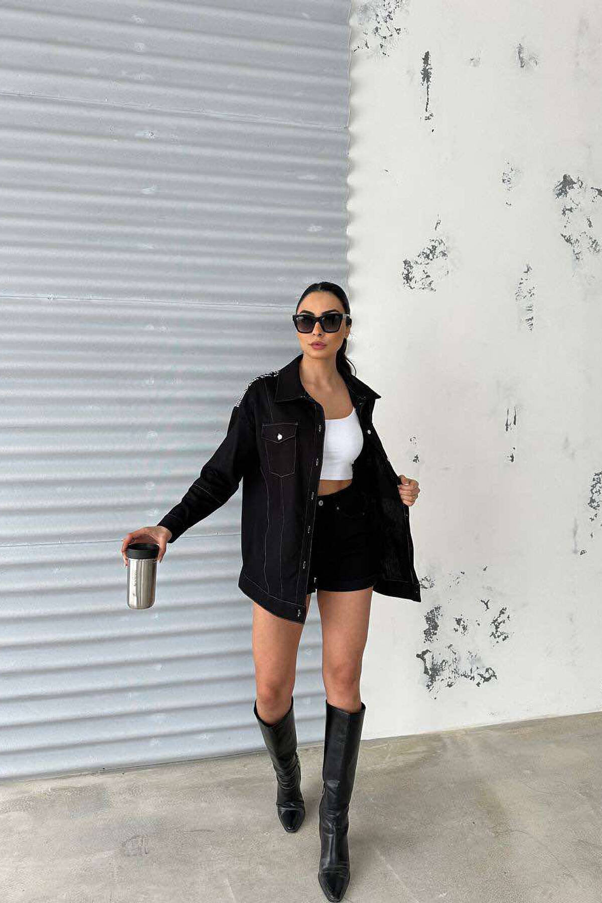 KËMISHË NJË NGJYRËSHE ME DETAJIN E QËNDISJES PËR FEMRA NË NGJYRËN E ZEZË