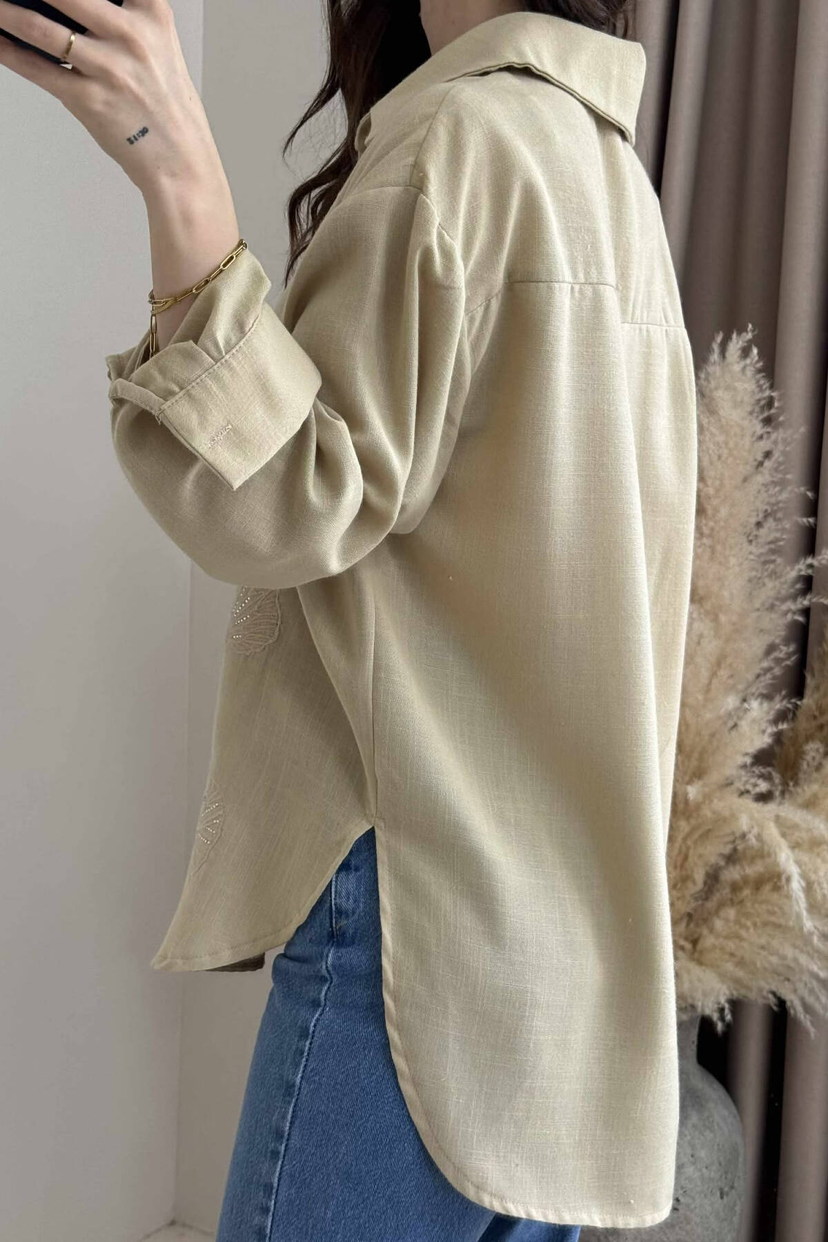 ONE COLOR LONG SLEEVE WOMEN SHIRT BEIGE/BEZHE