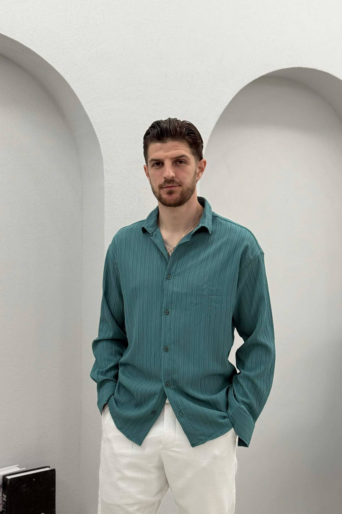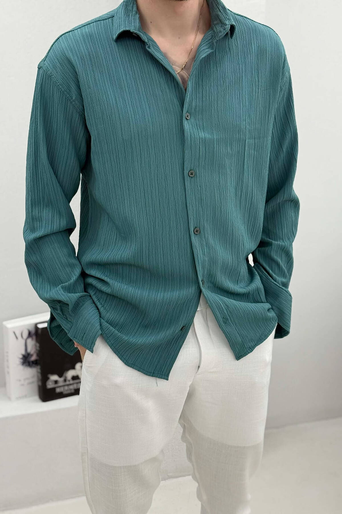 SIMPLE LONG SLEEVE MEN SHIRT GREEN/JESHILE