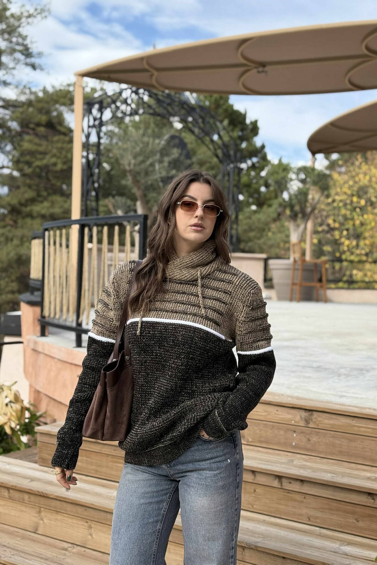 STRIPE DESIGN WOMEN SWEATER BROWN/KAFE