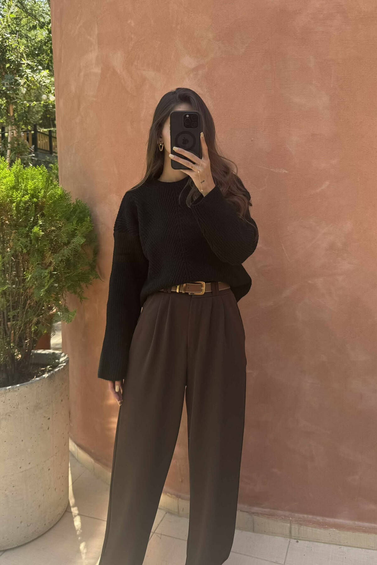 KNITTED ONE COLOR SIMPLE WOMEN SWEATER BLACK/ E ZEZE