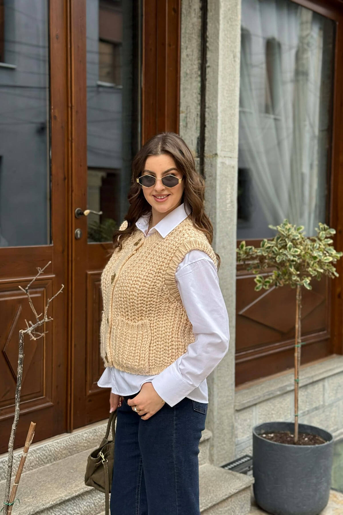 ONE COLOR BUTTON WOMEN VEST BEIGE/BEZHE