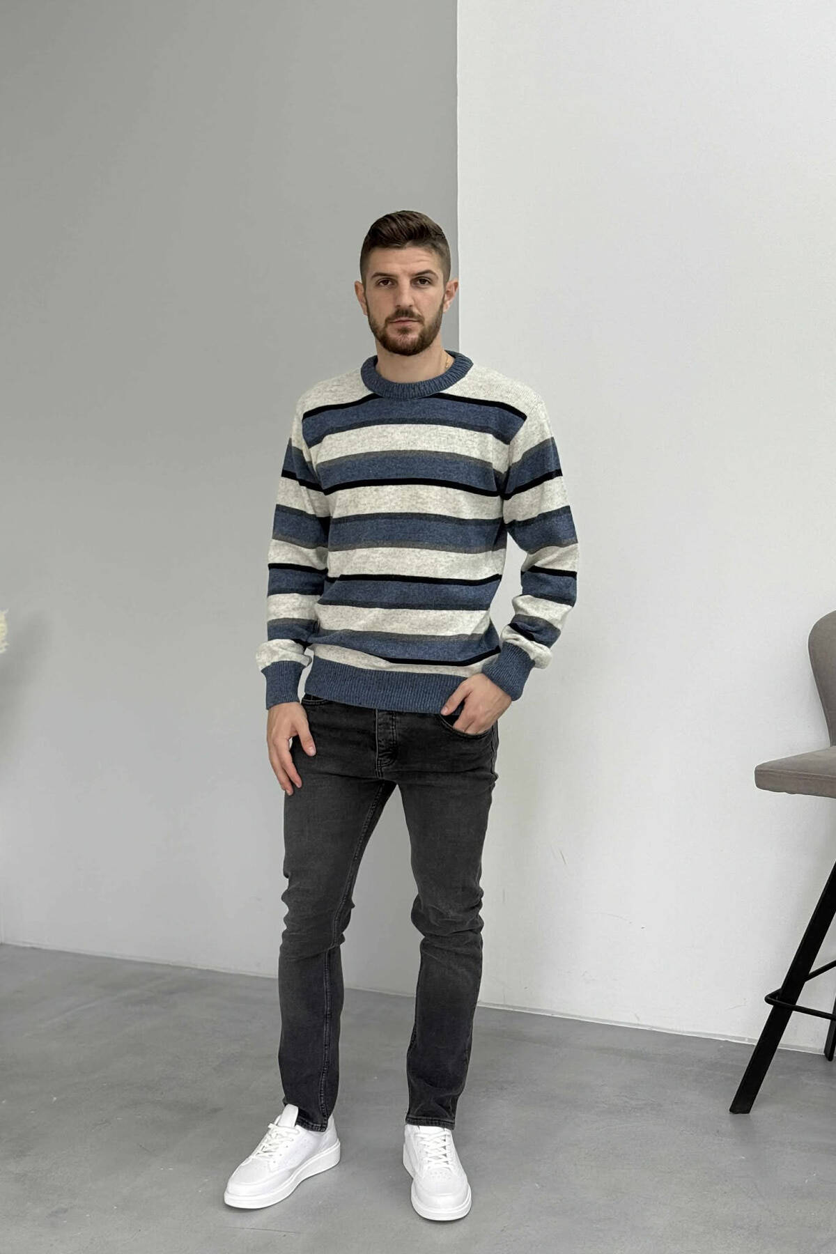 KNITTED STRIPE DESIGN MEN SWEATER BLUE/BLU