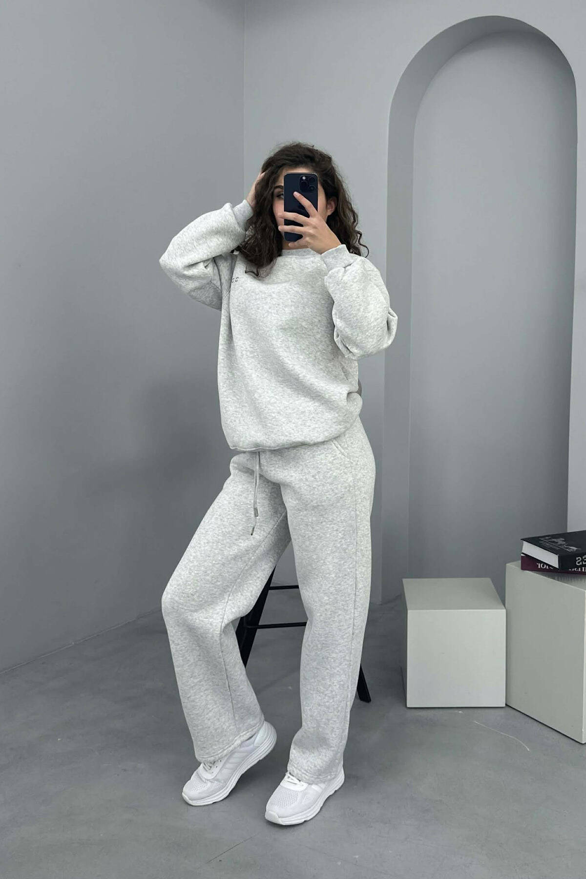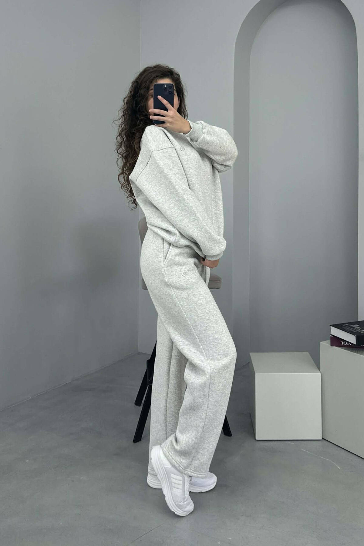 KOSTUM ALO ME PUSH BLUZË+TUTA PËR FEMRA NË NGJYRË GRI TË ZBARDHUR