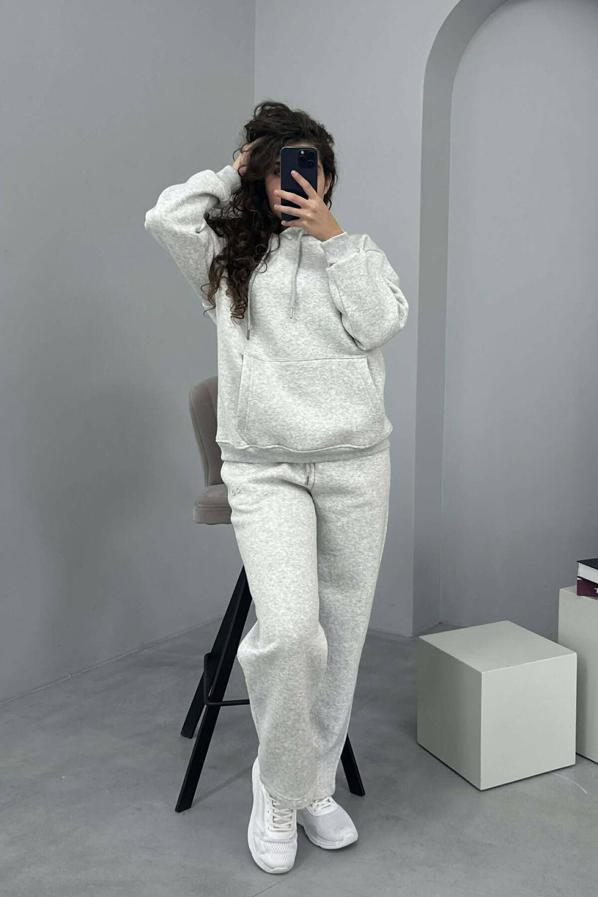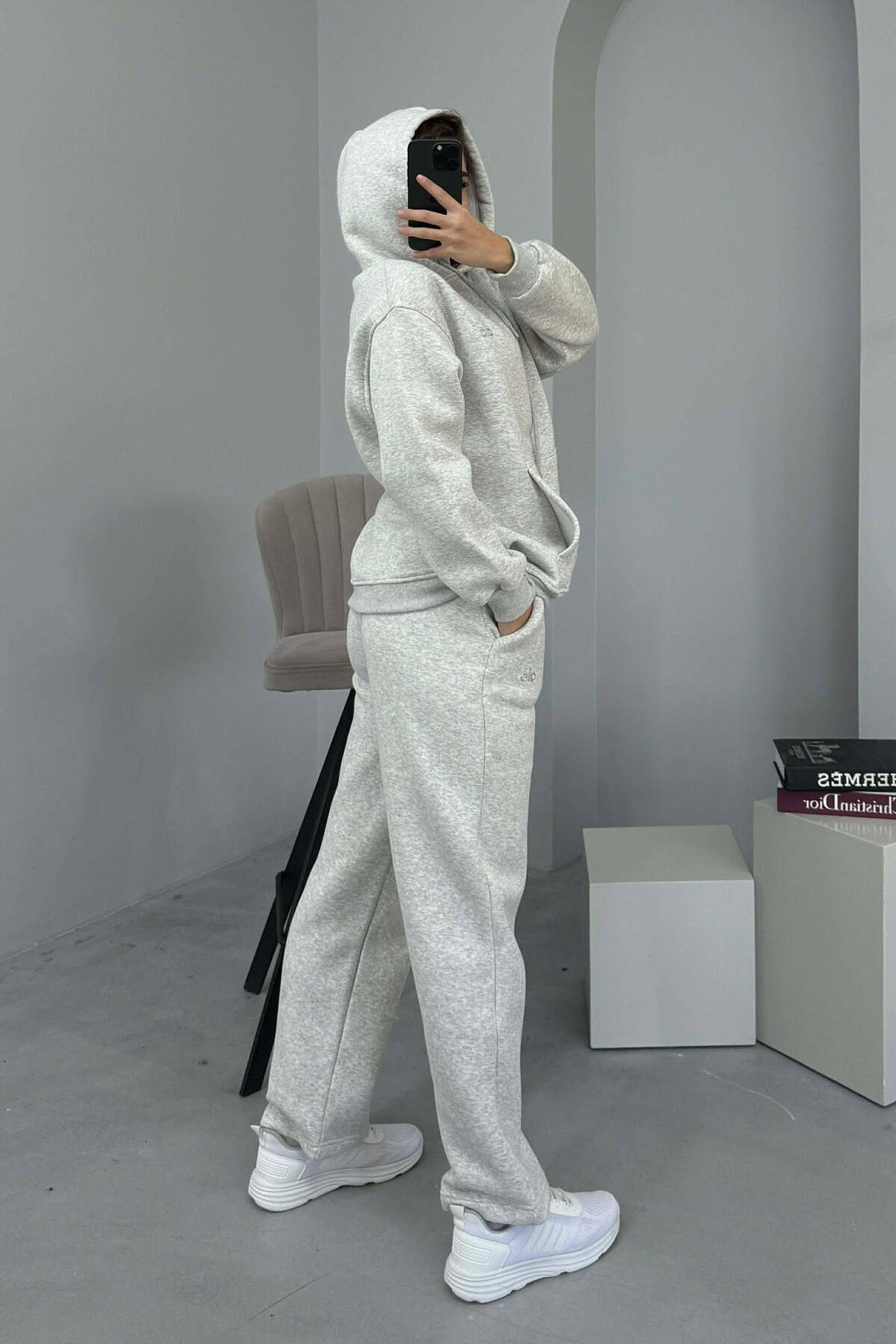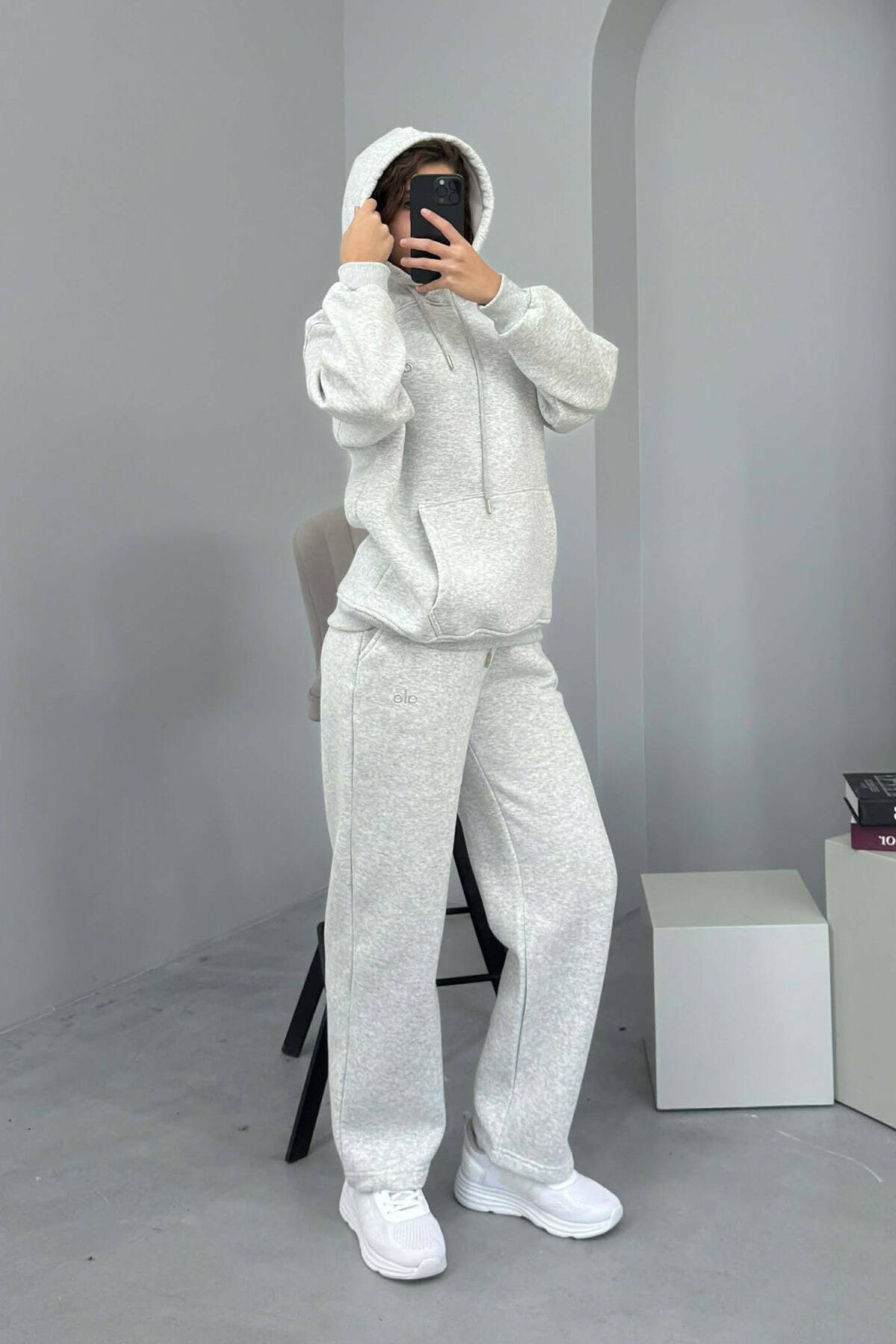 KOSTUM ALO ME PUSH HOODIE+TUTA PËR FEMRA NË NGJYRË GRI TË ZBARDHUR
