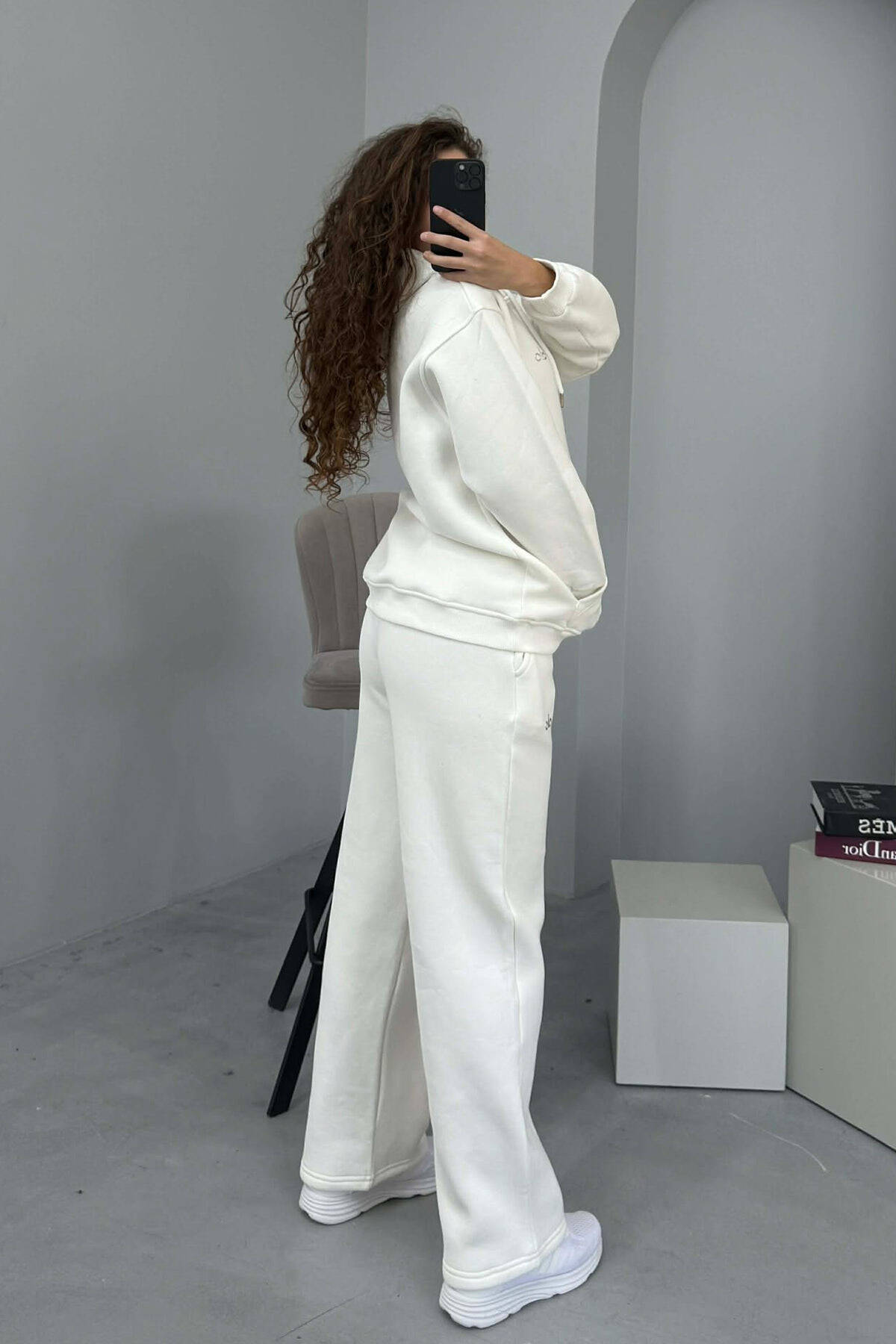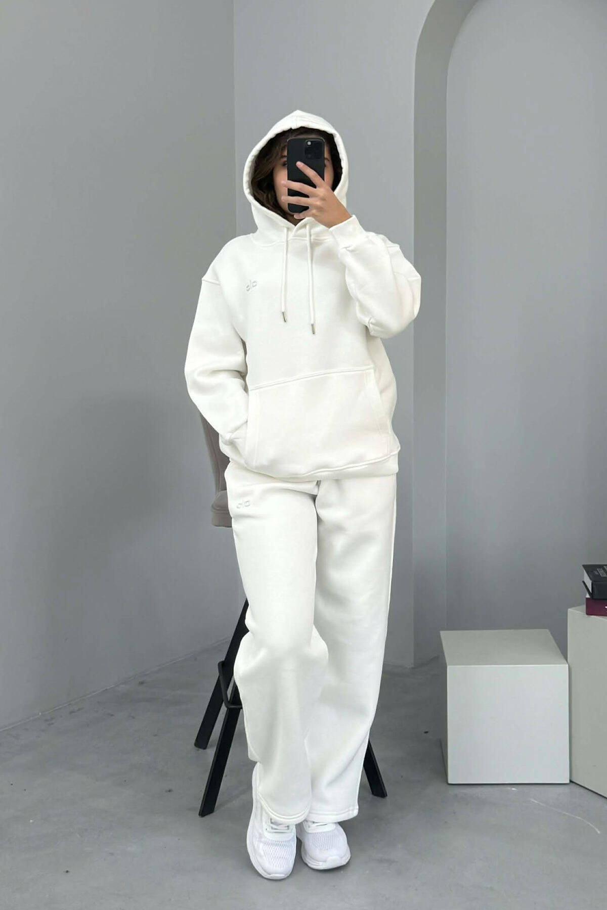 KOSTUM ALO ME PUSH HOODIE+TUTA PËR FEMRA NË NGJYRË TË BARDHË