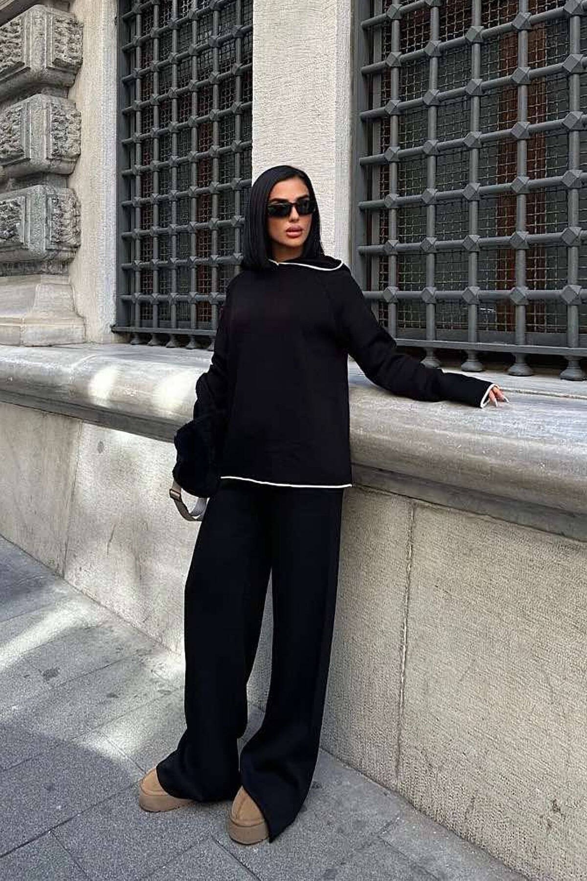 KOSTUM BLUZË ME KAPUC +PANTALLONA PËR FEMRA NGJYRË TË ZEZË