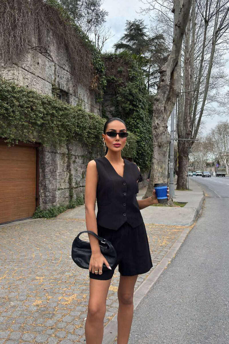 KOSTUM JELEK+PANTALLONA TË SHKURTRA PËR FEMRA NË NGJYRËN E ZEZË