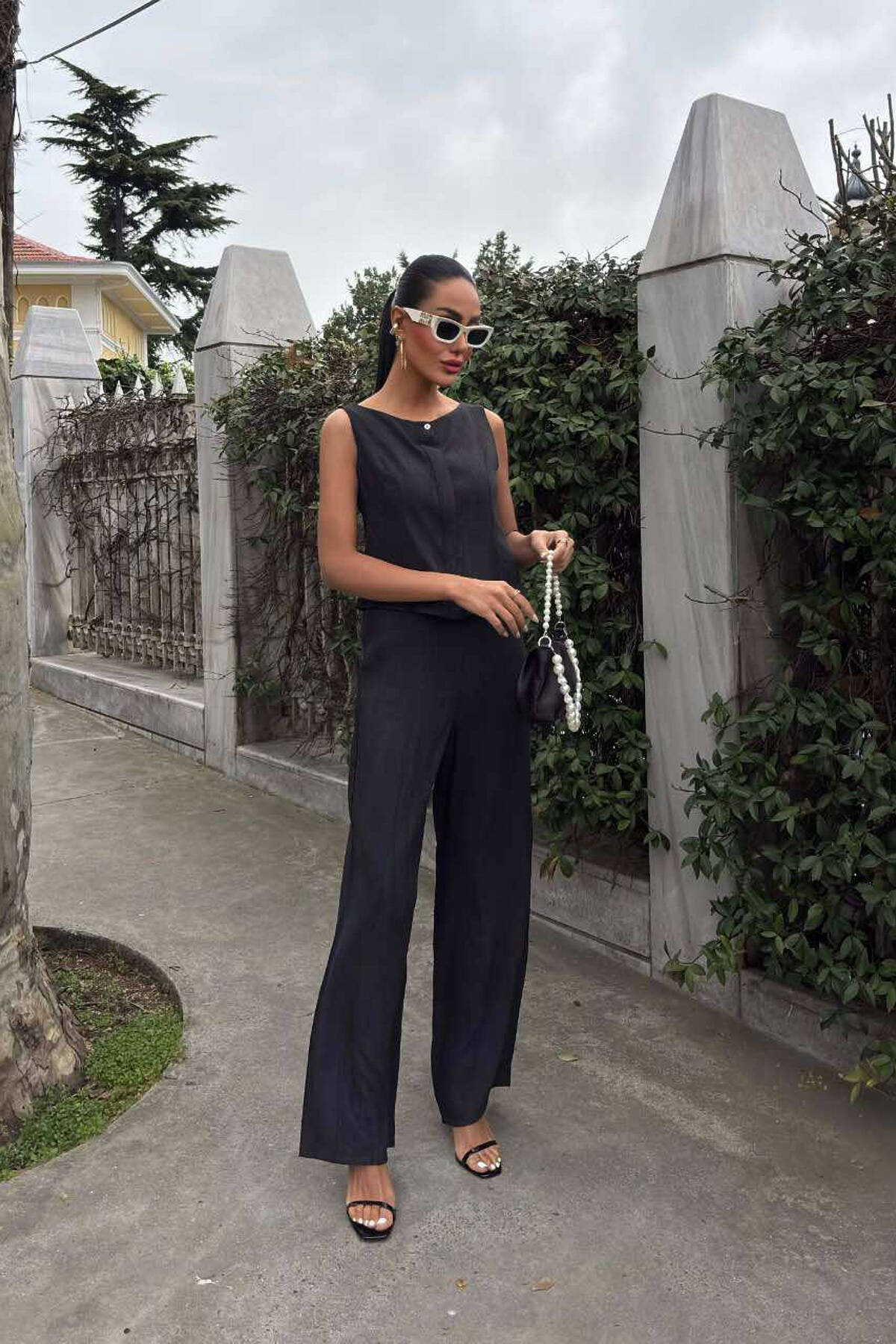KOSTUM LINO BLUZË+PANTALLONA PËR FEMRA NË NGJYRËN E ZEZË