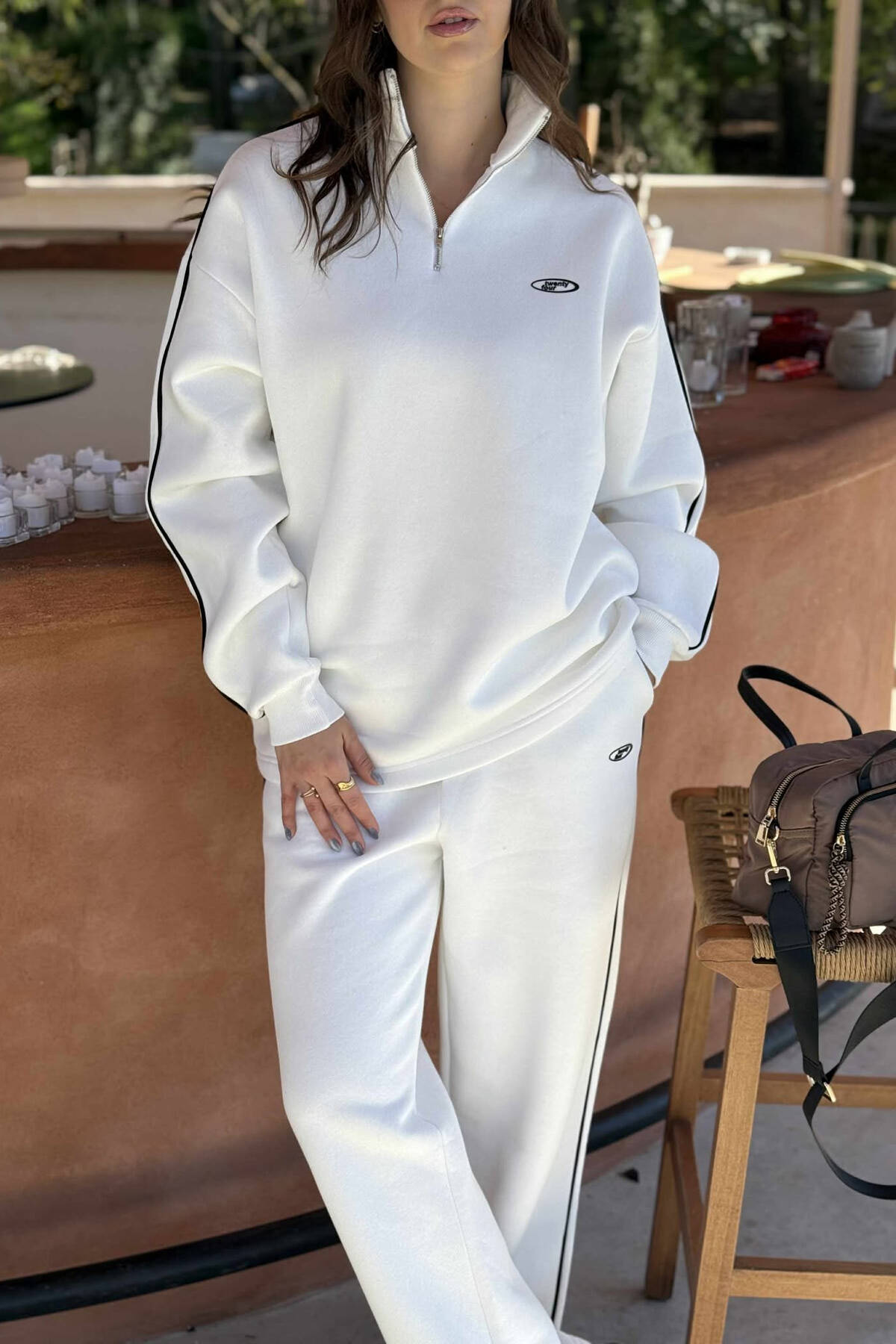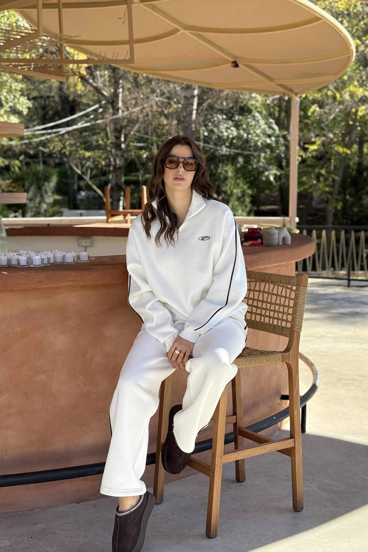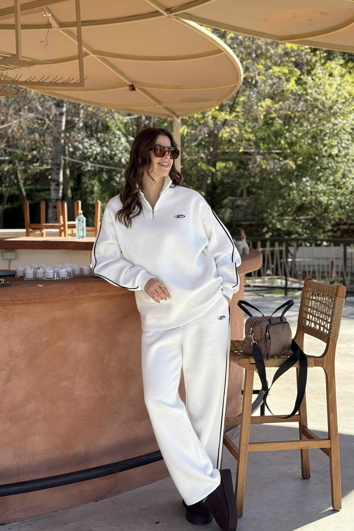 KOSTUM ME JAKË ME ZINXHIR BLUZË+PANTALLONA PËR FEMRA NË NGJYRË TË BARDHË