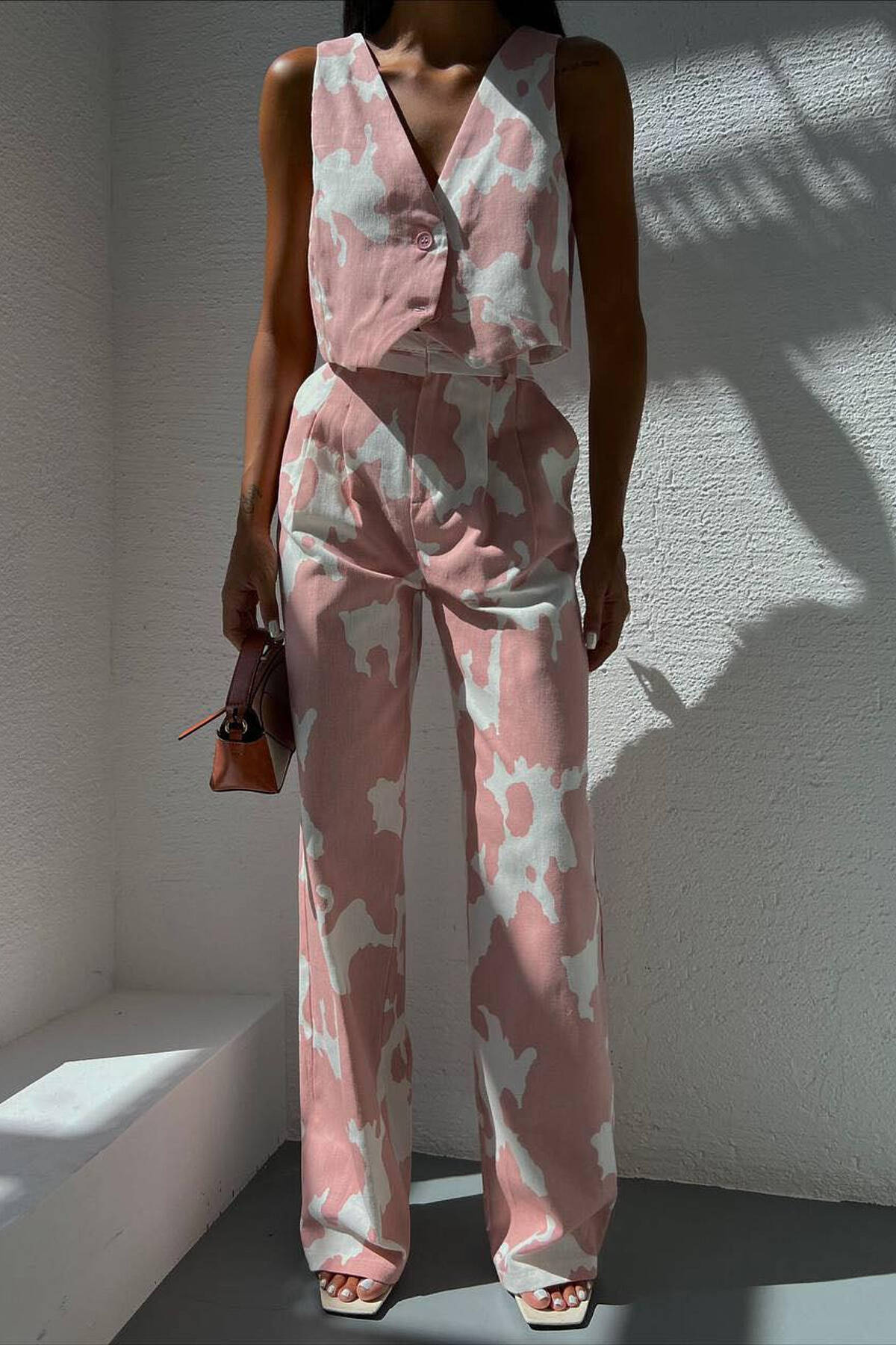 Kostum me pantallona dhe jelek per femra ne ngjyren puder