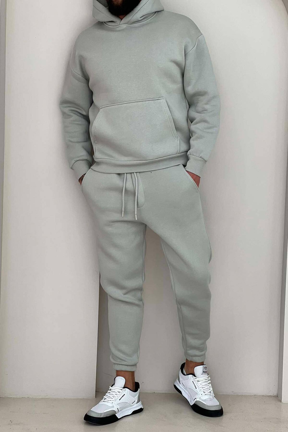 Kostum Me Push Hoodie Dhe Tuta Një Ngjyrëshe Për Meshkuj Në Ngjyrën Mente