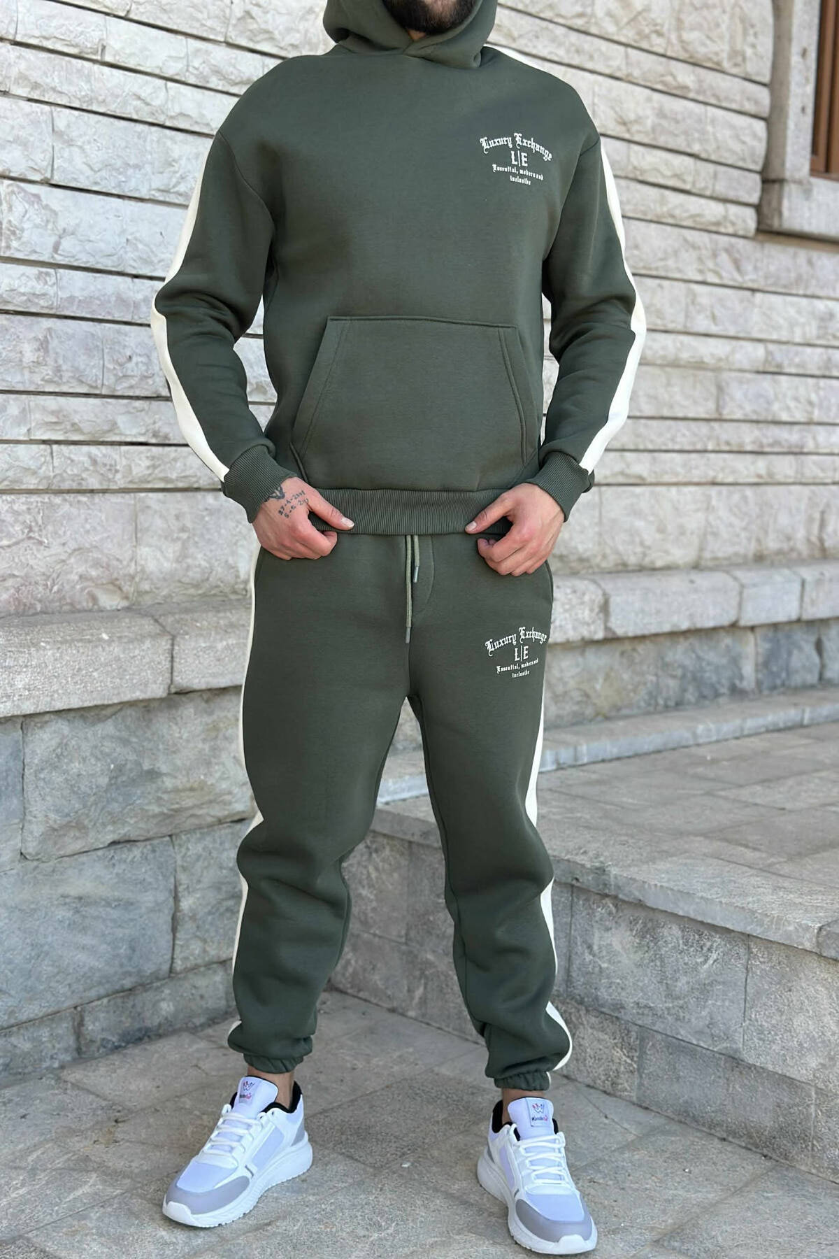 KOSTUM ME PUSH HOODIE +TUTA ME SHKRIME TË VOGLA PËR MESHKUJ NË NGJYRË JESHILE