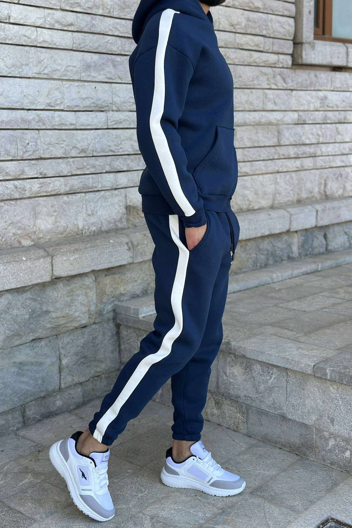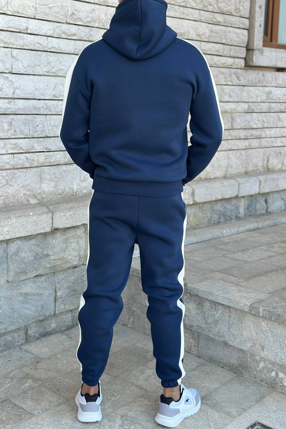 KOSTUM ME PUSH HOODIE +TUTA ME SHKRIME TË VOGLA PËR MESHKUJ NË NGJYRËN BLU TË ERRËT