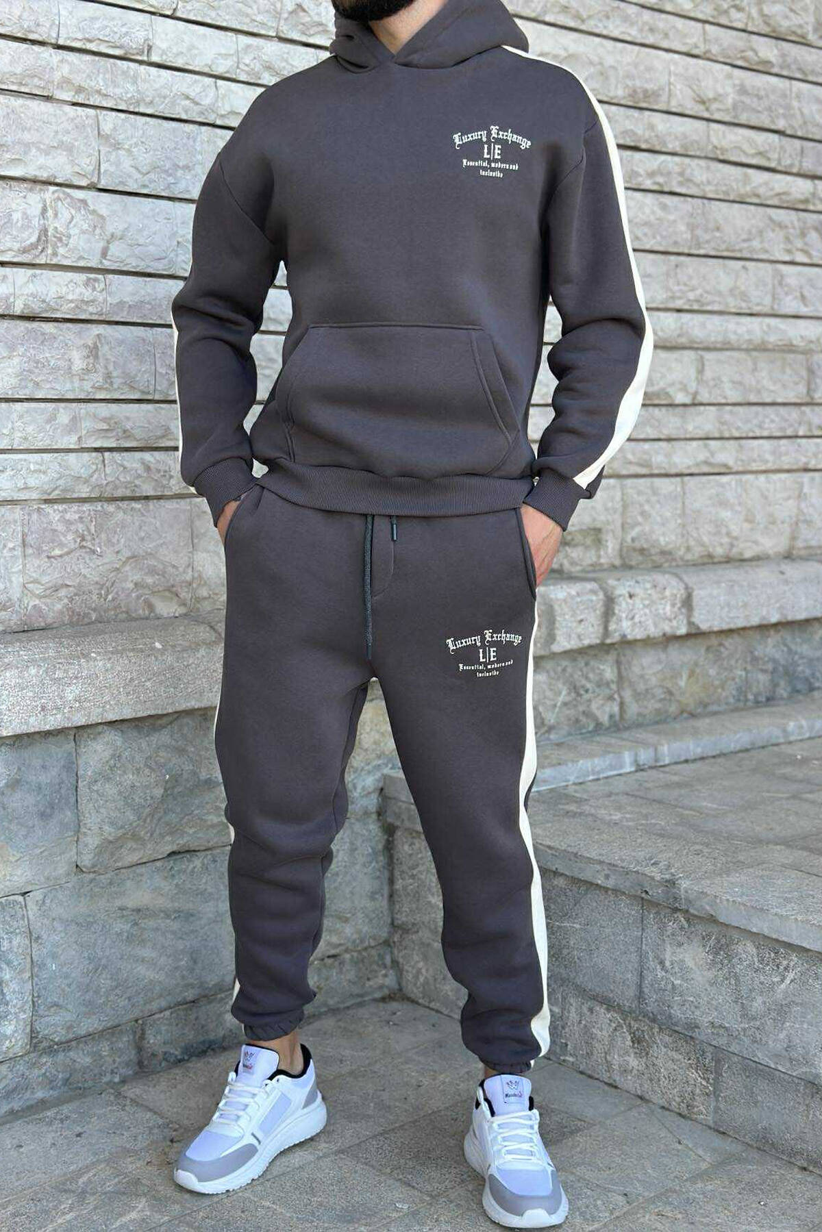 HOODIE+JOGGERS WRITTINGS FLUFFY MEN SET DARK GREY/GEE