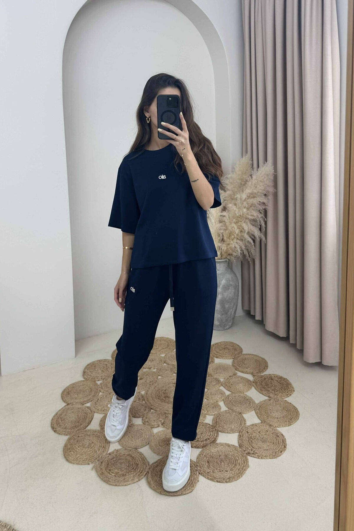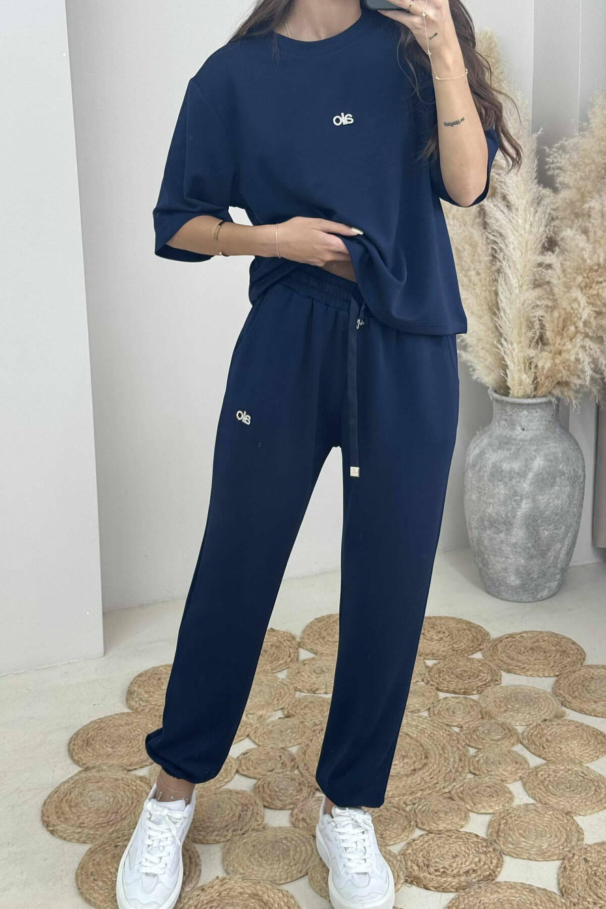 KOSTUM ME SHKRIM ALO T-SHIRT+TUTA PËR FEMRA NË NGJYRËN BLU TË ERRËT