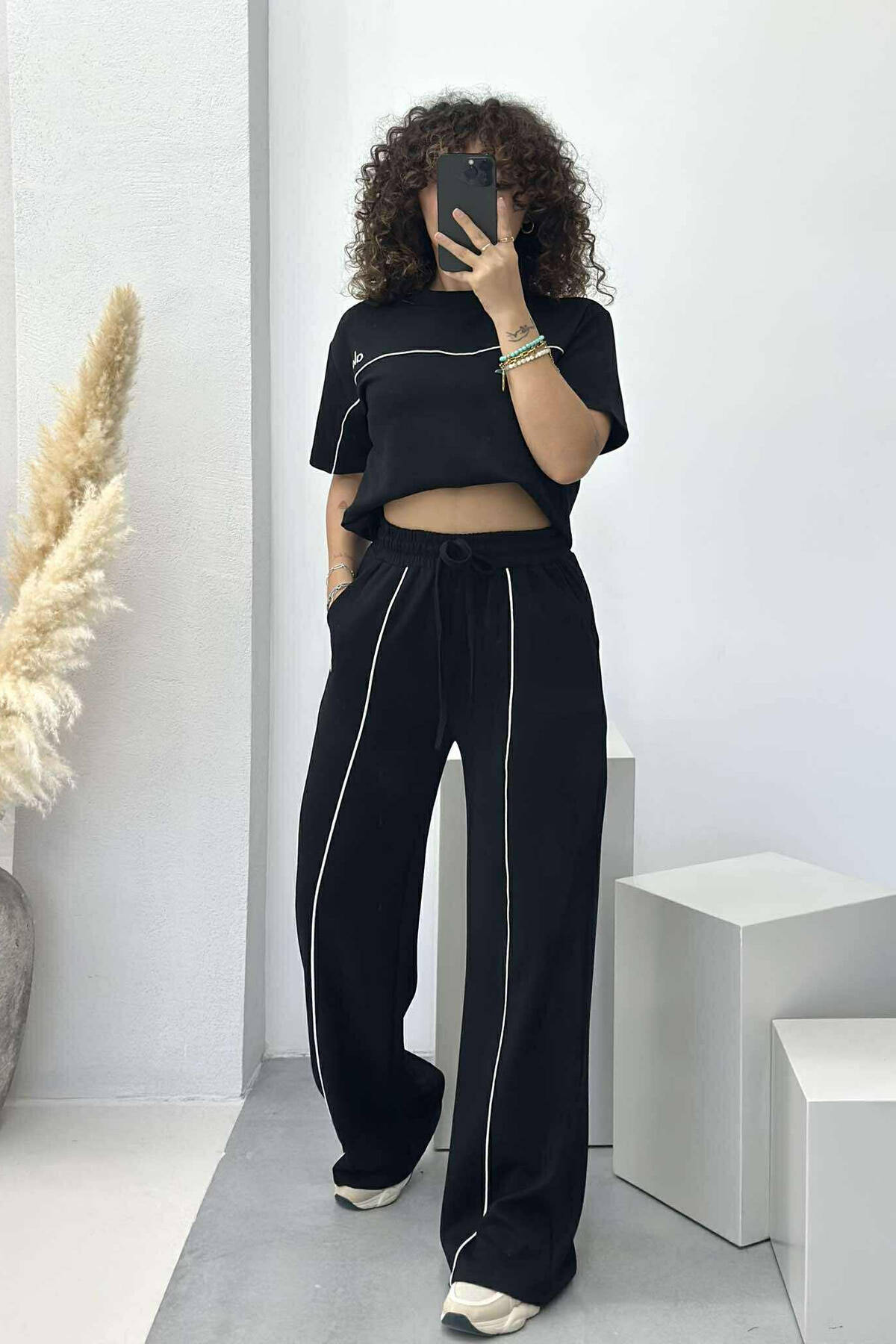 KOSTUM ME VIJA ME SHKRIM ALO T-SHIRT+PANTALLONA PËR FEMRA NË NGJYRËN E ZEZË