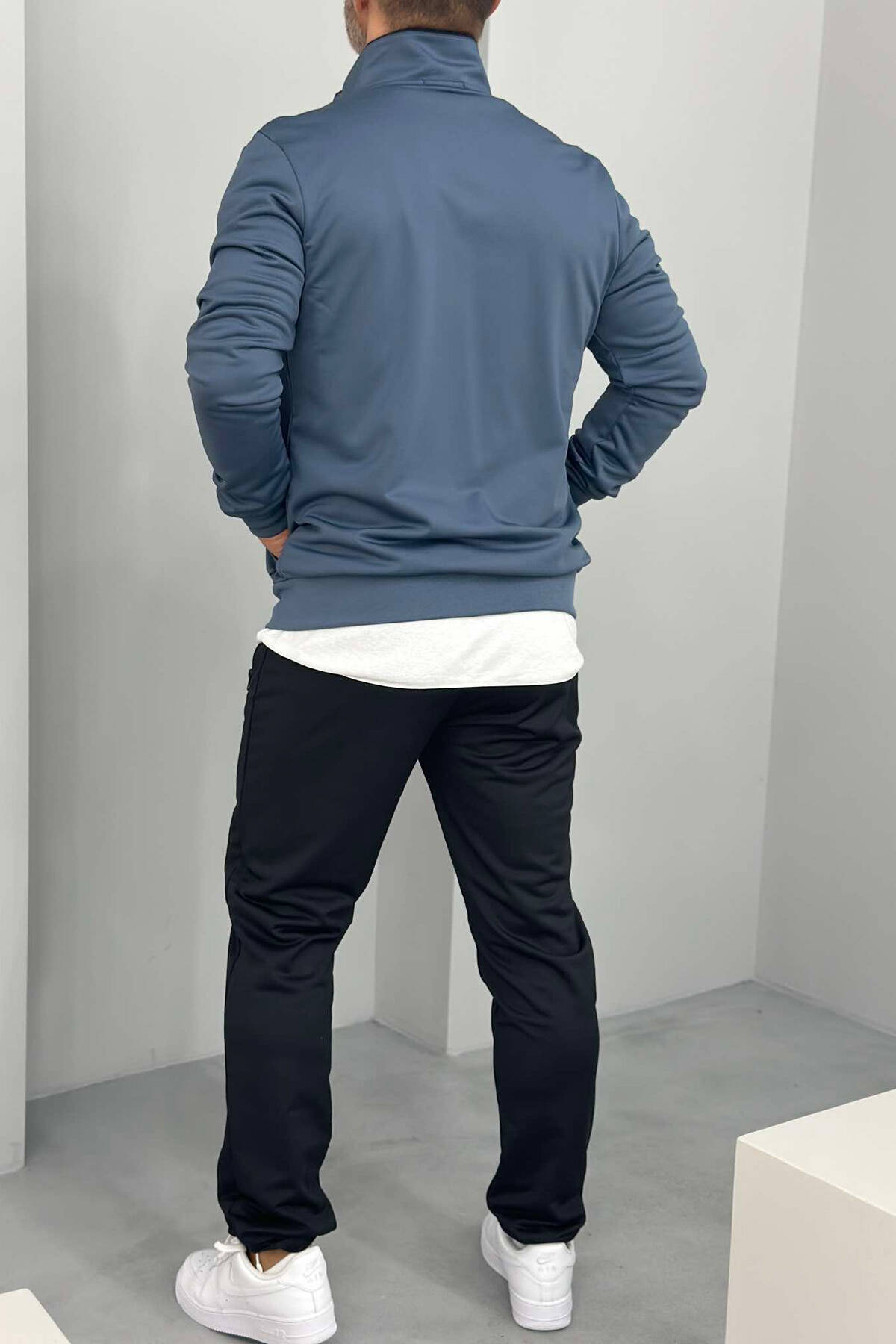 Kostum Një Ngjyrësh Për Meshkuj Xhaketë Dhe Tuta Në Ngjyrën Blu Të Zbardhur