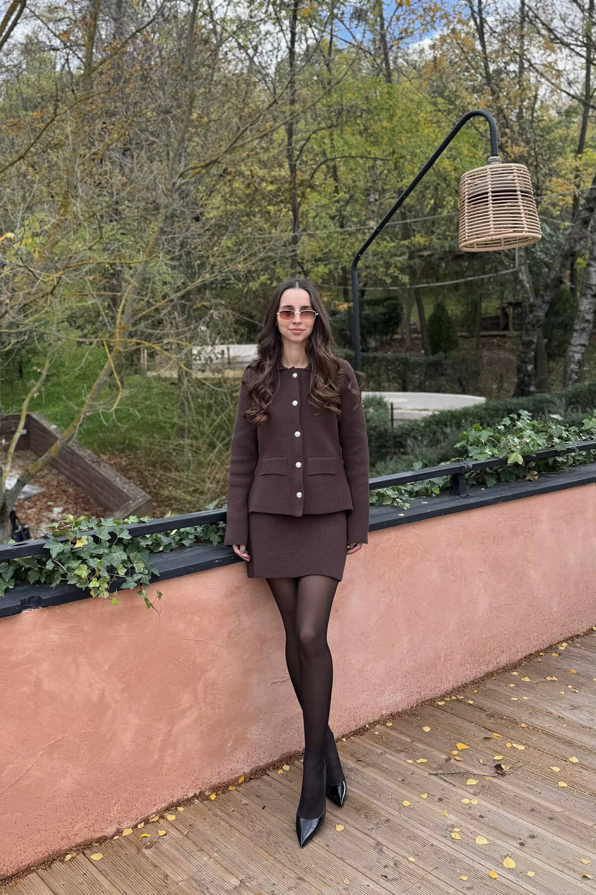 KOSTUM NJË NGJYRËSH XHAKETË ME BUTONA+FUND PËR FEMRA NË NGJYRË KAFE