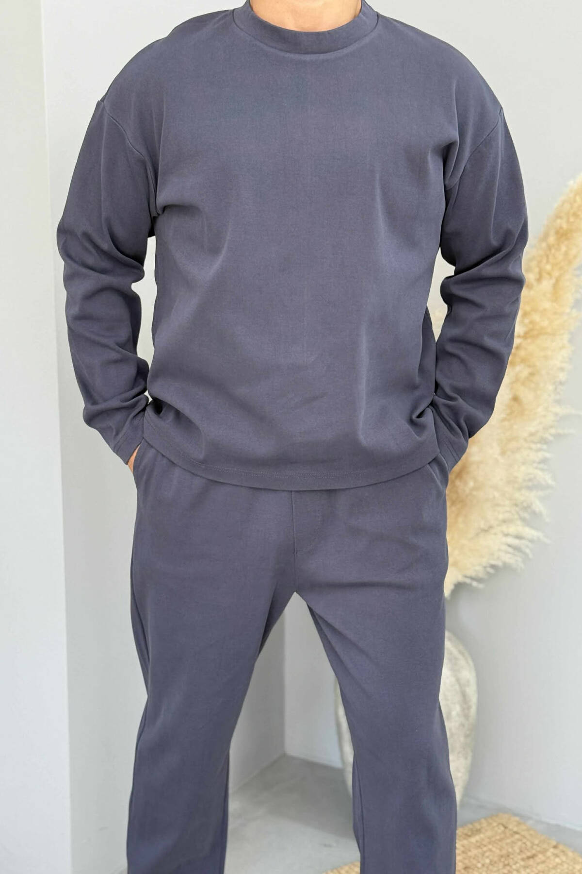 KOSTUM NJËNGJYRËSH BLUZË DHE TUTA PËR MESHKUJ NË NGJYRËN GRI TË ERRËT