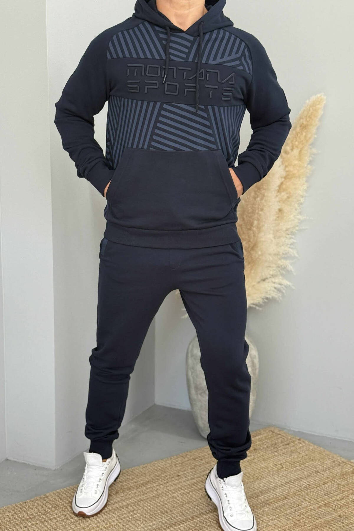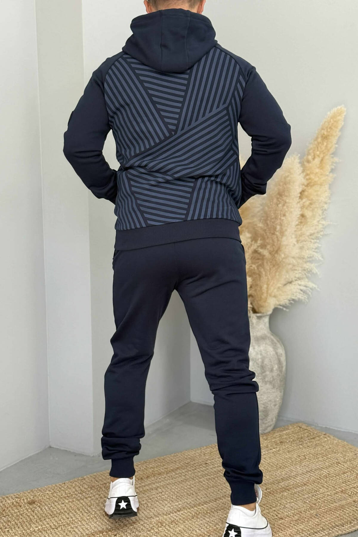 KOSTUM NJËNGJYRËSH HOODIE+TUTA PËR MESHKUJ NË NGJYRËN BLU TË ERRËT