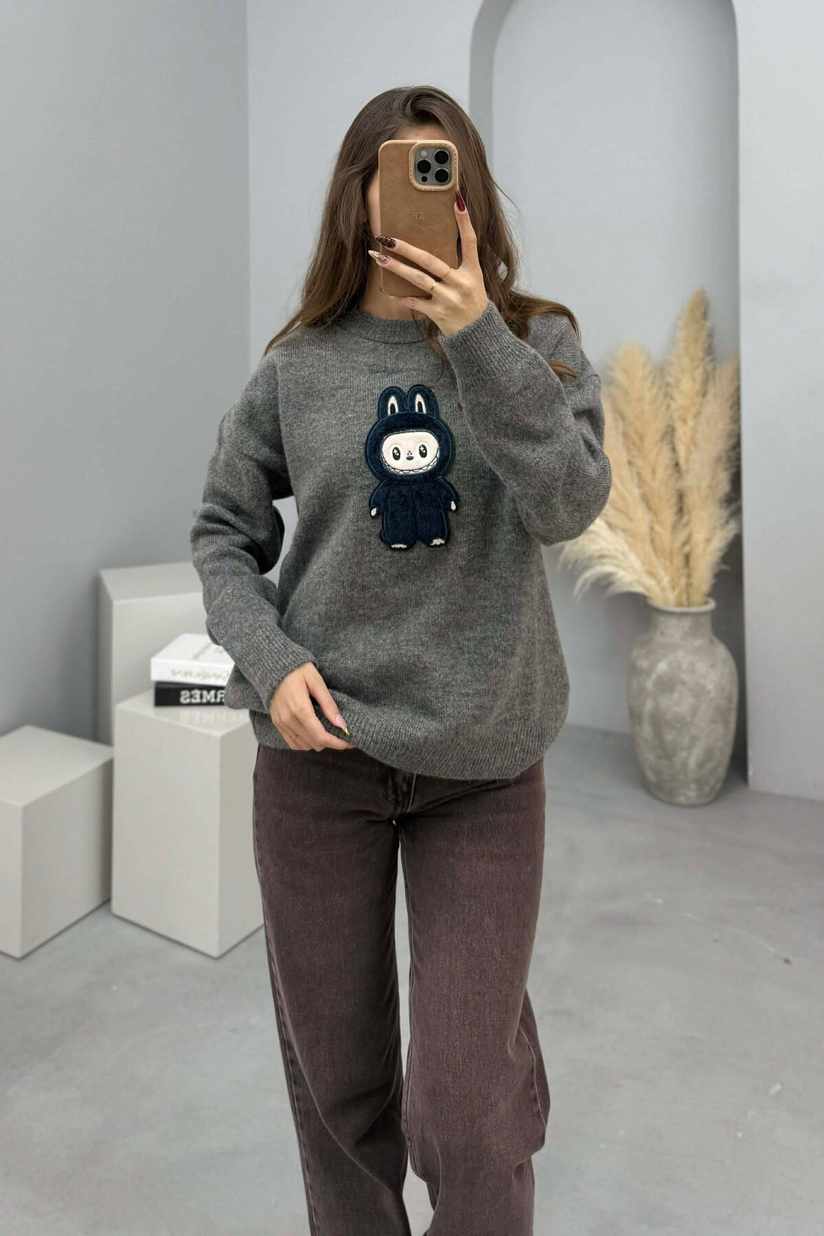 LABUBU FRONT IMAGE WOMEN SWEATER GREY/GRI