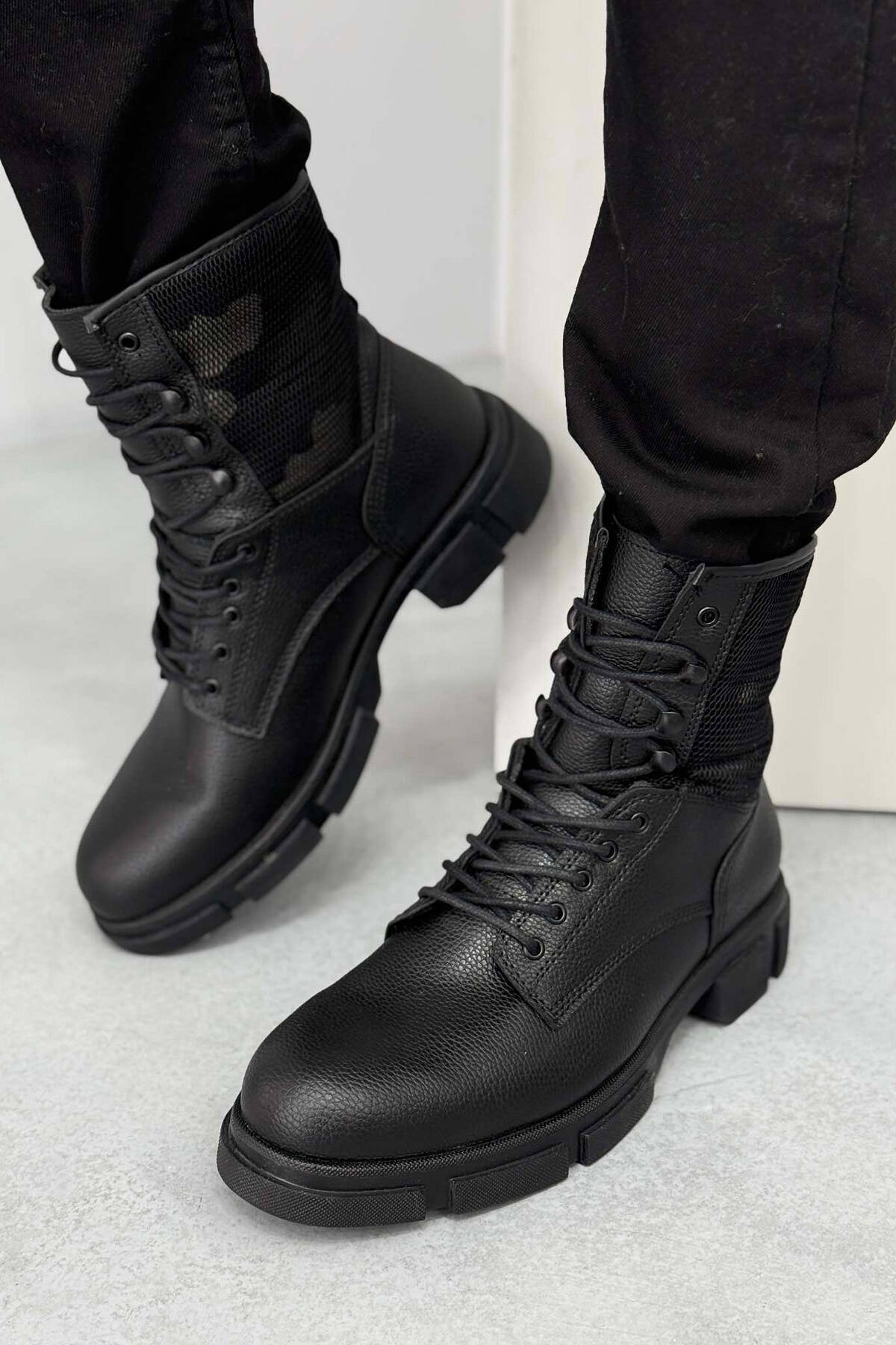 LACE-UP ONE COLOR MEN BOOTS BLACK/ E ZEZE