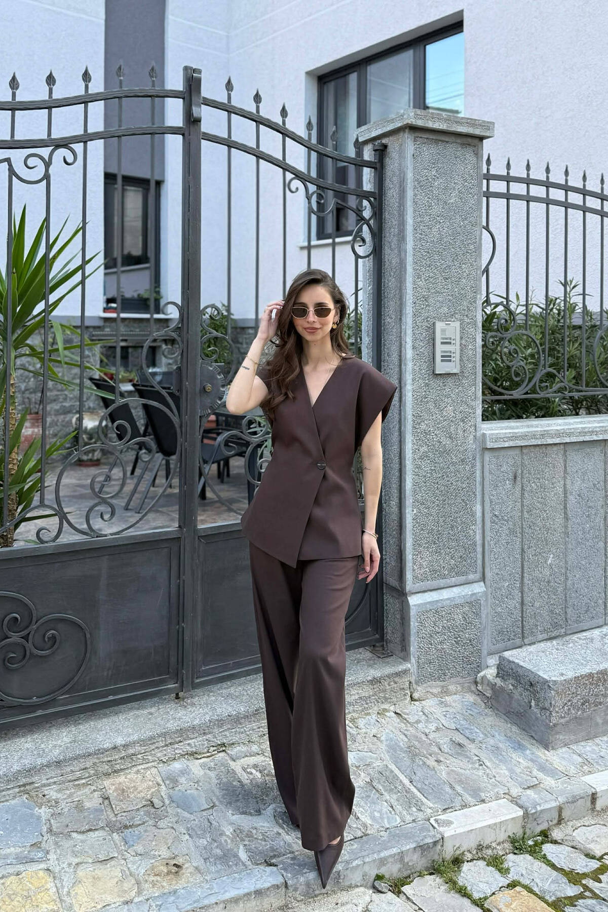 LACING DETAIL VEST +TROUSERS WOMAN SET BROWN/KAFE