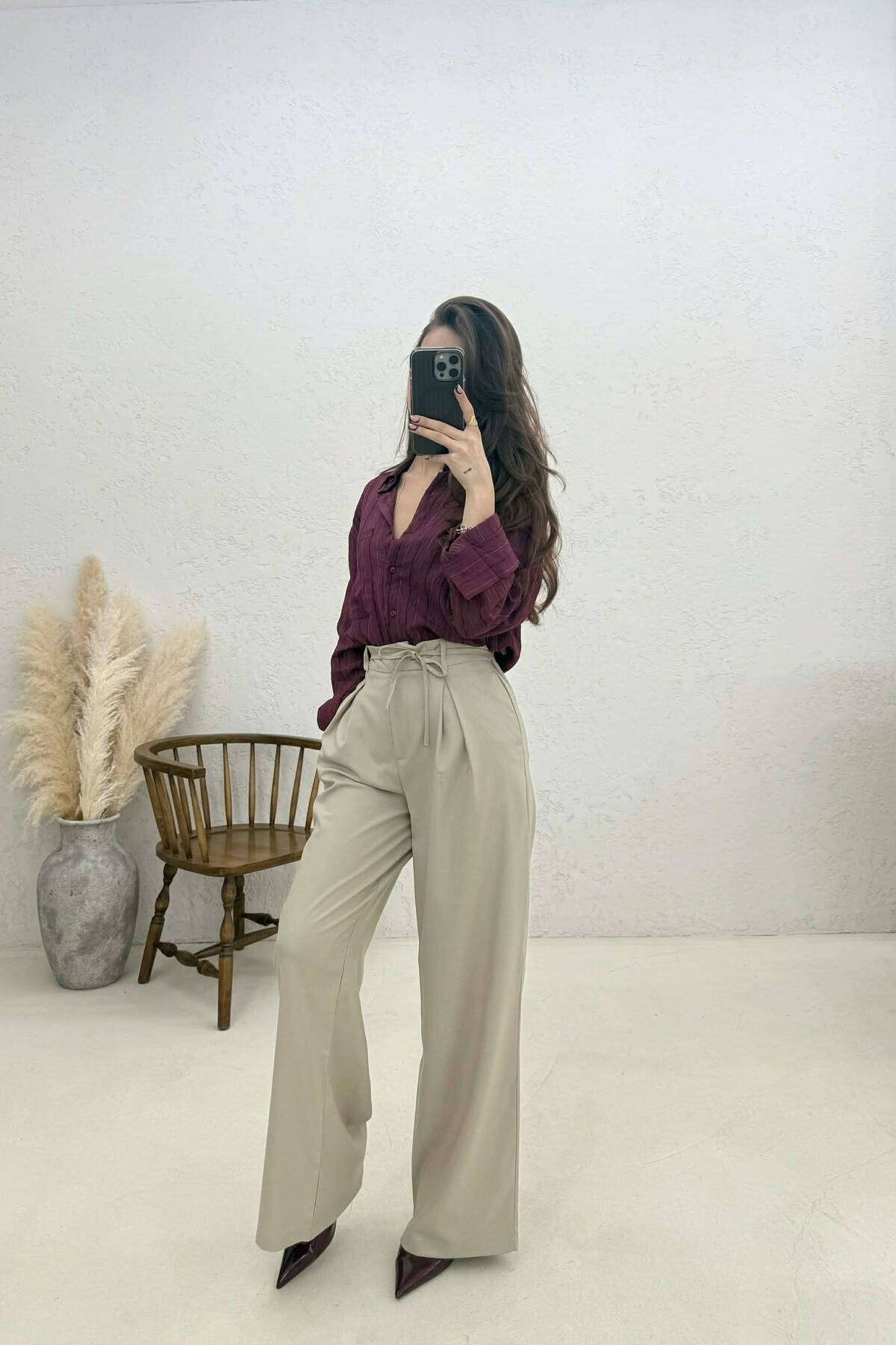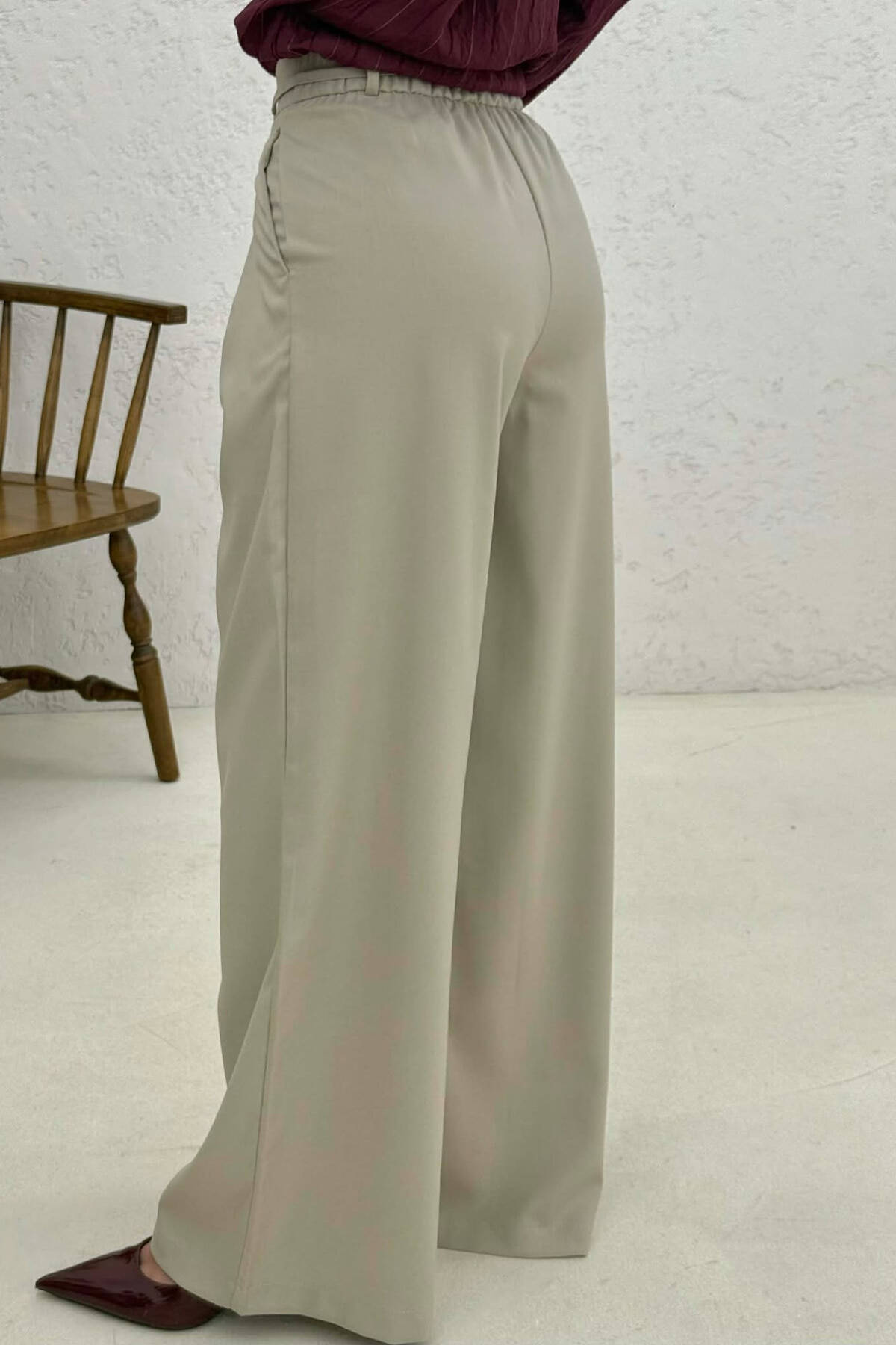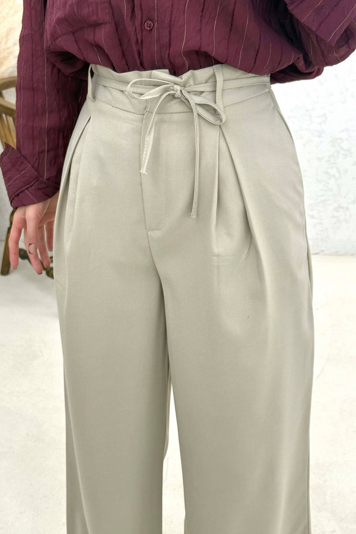 LACING DETAIL WIDE LEG WOMAN TROUSERS BEIGE/BEZHE