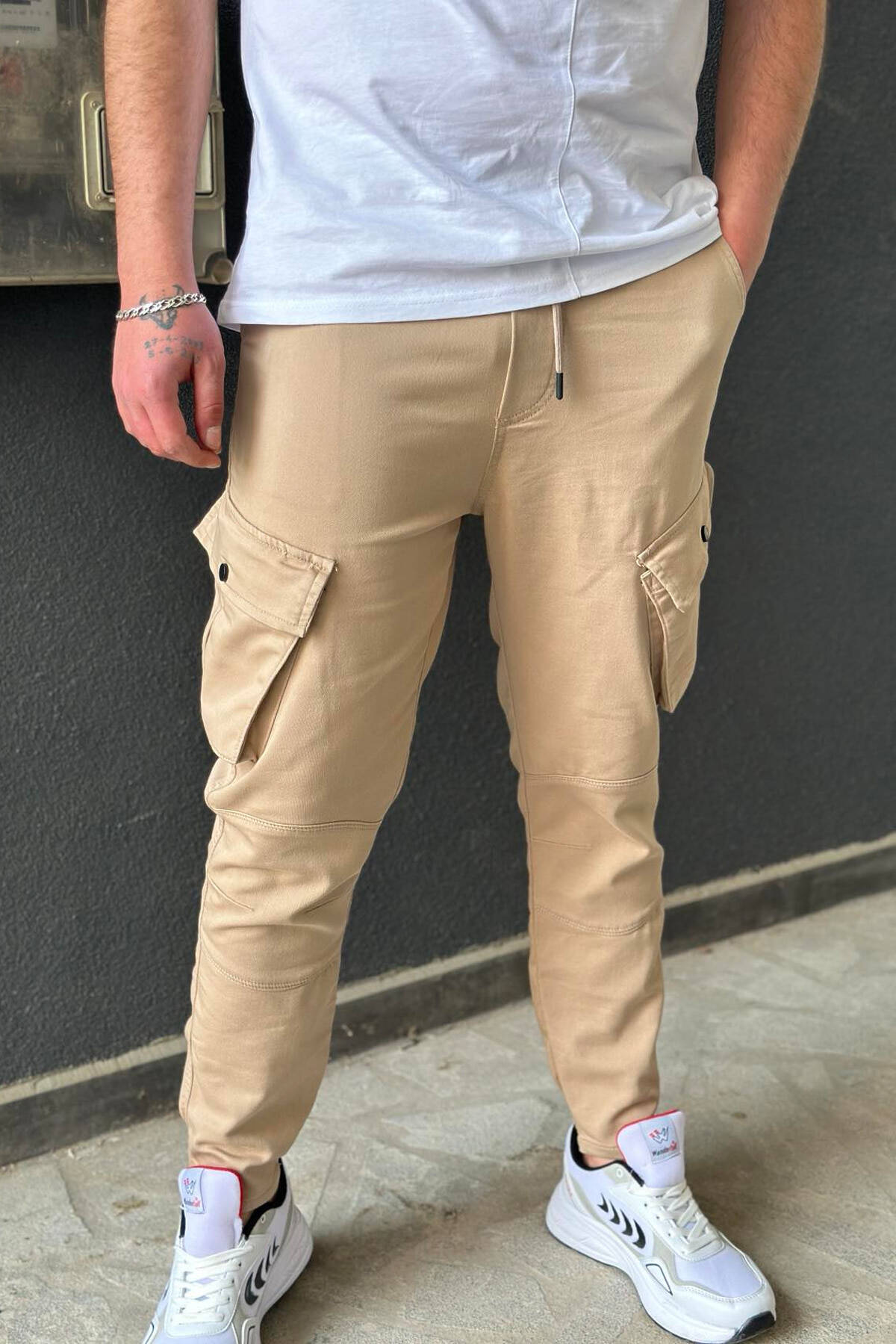 PANTALLONA CARGO ME XHEPA PËR MESHKUJ NË NGJYRËN BEZHË