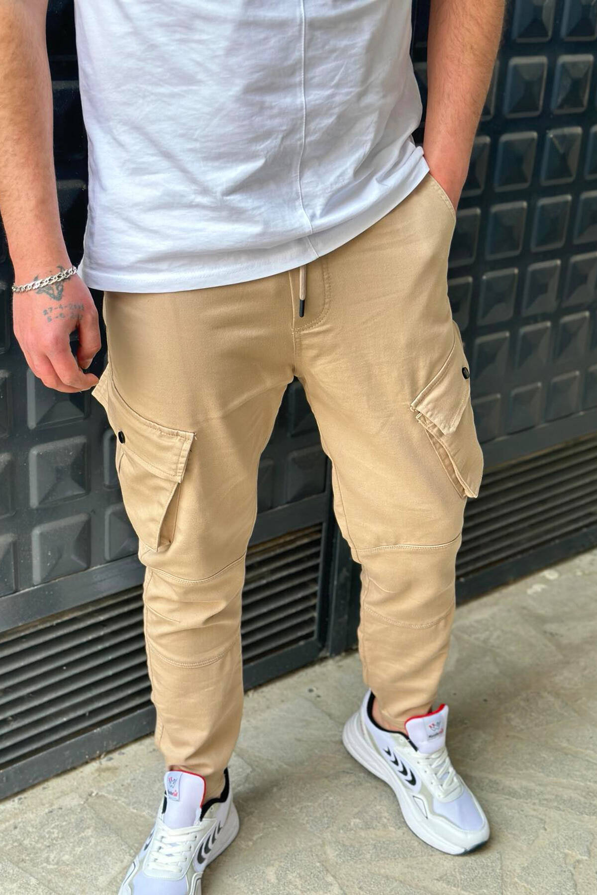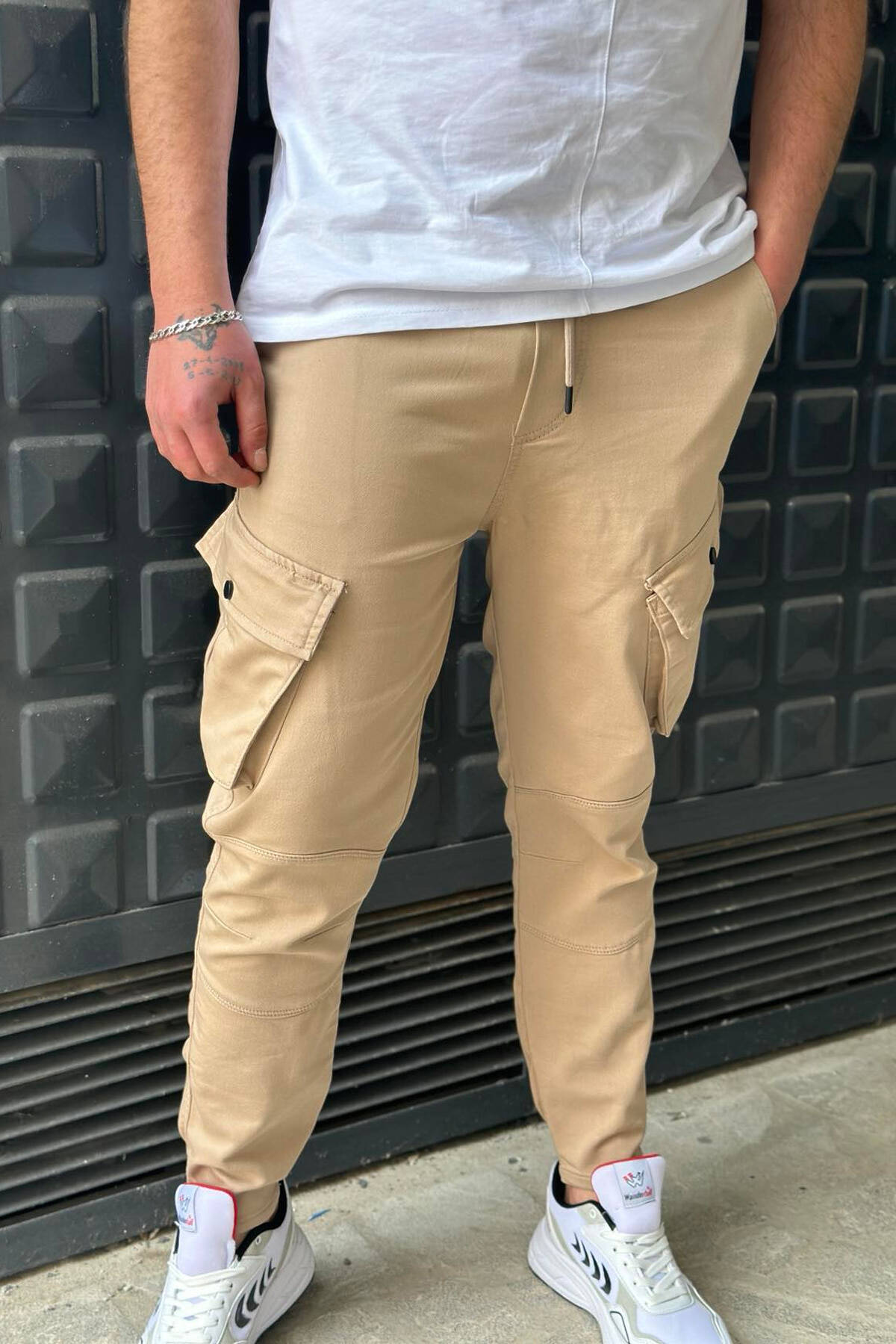 Pantallona cargo me xhepa per meshkuj ne ngjyren bezhe
