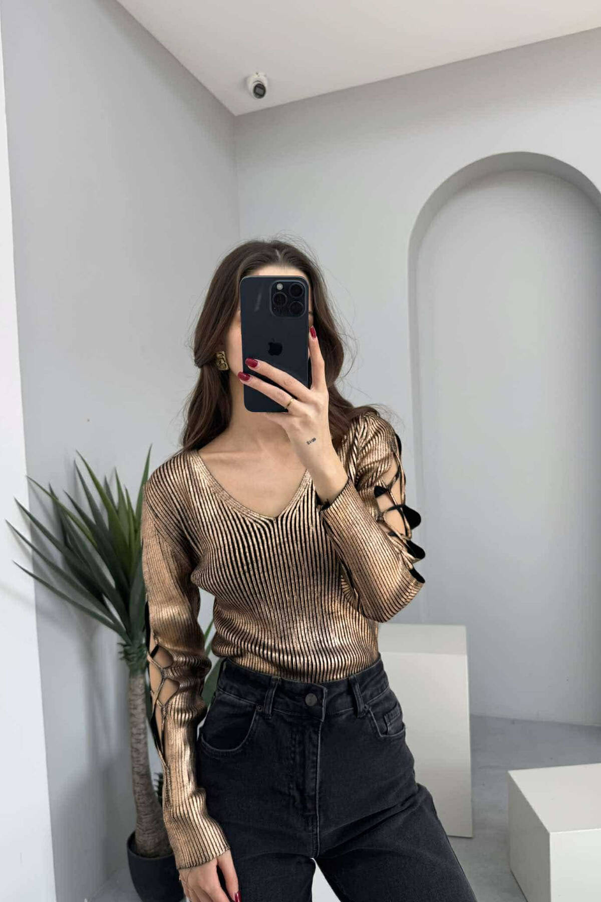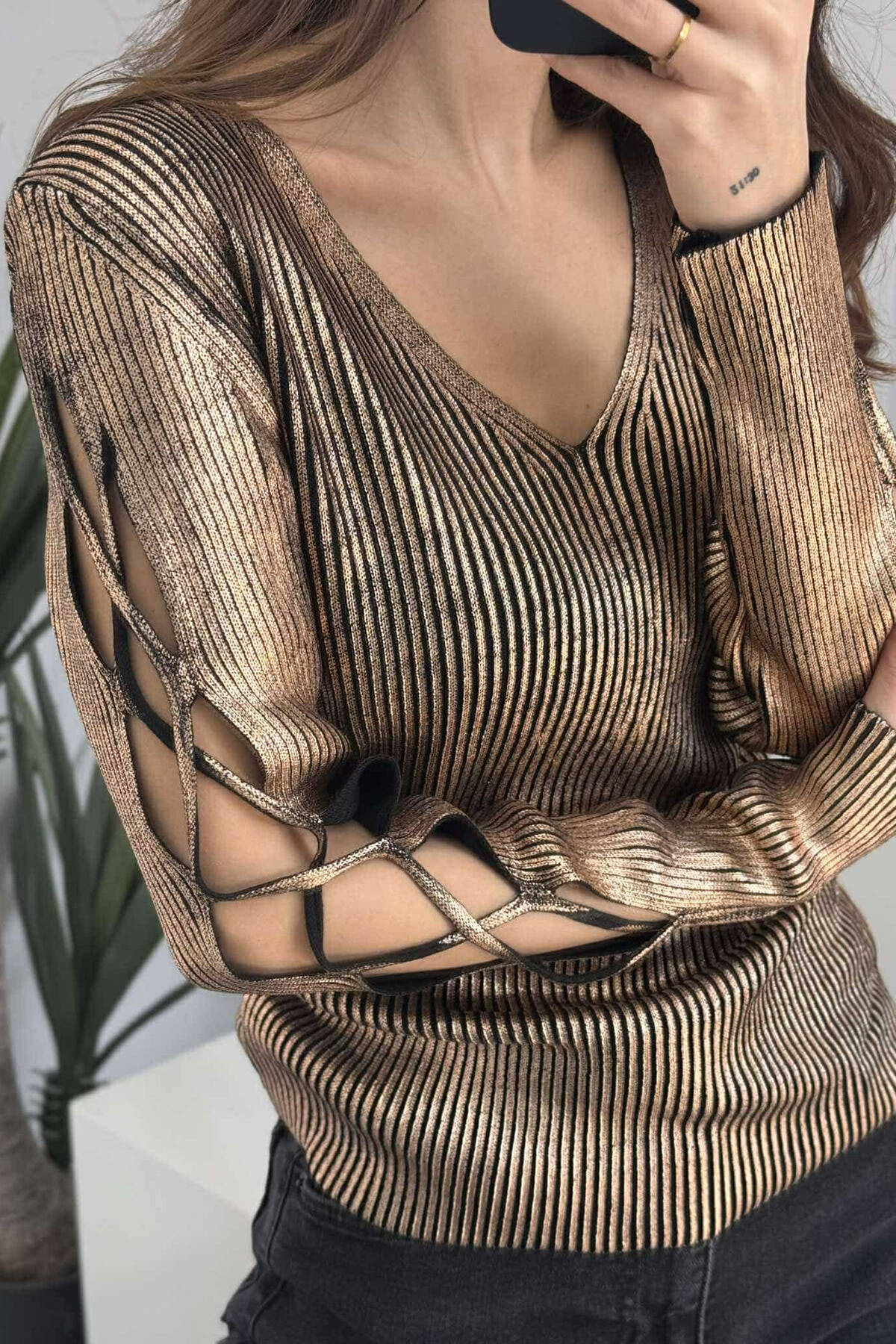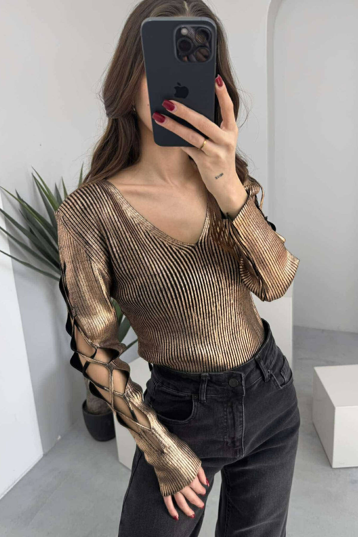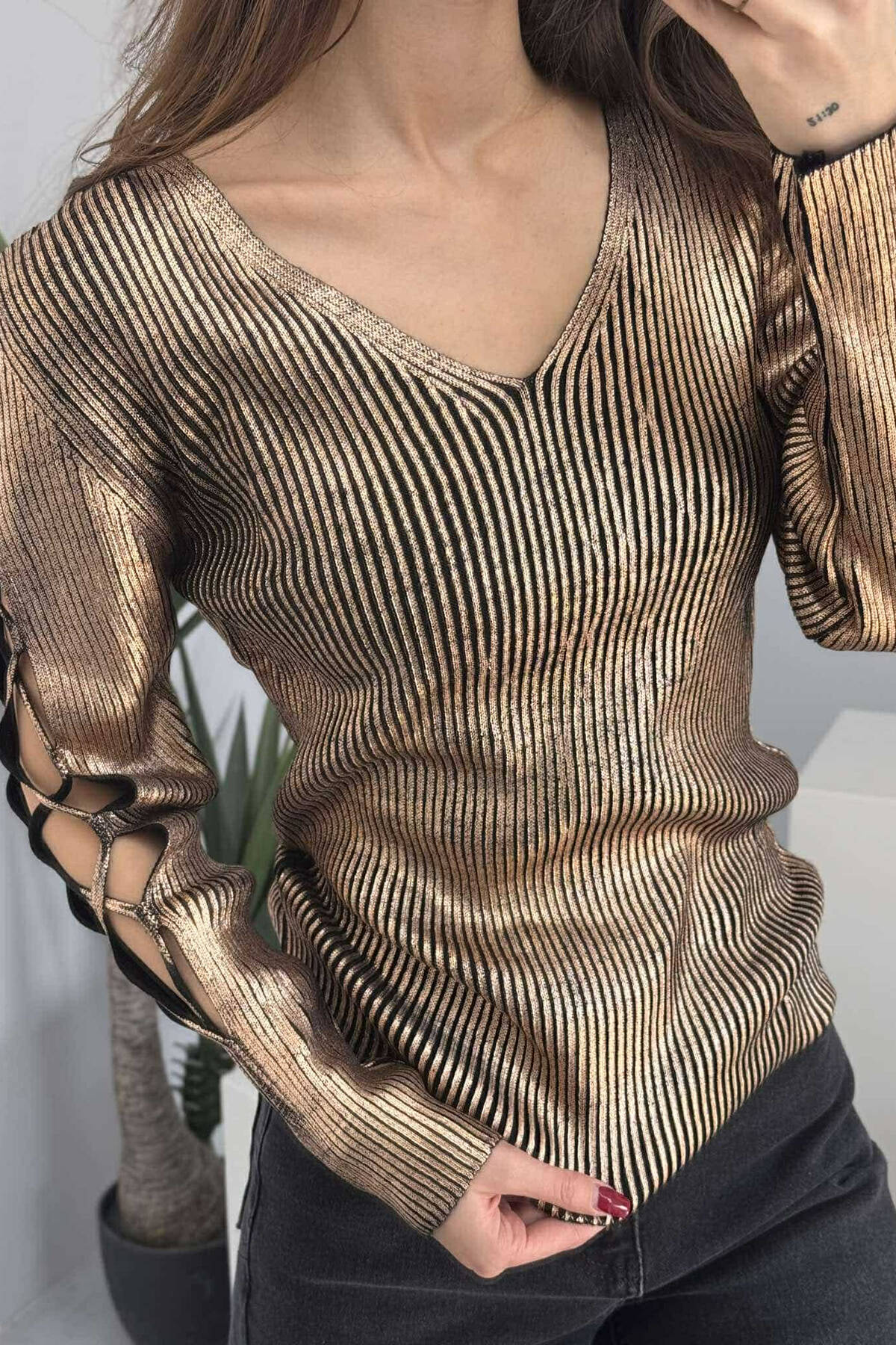TRIKO ME MATERIAL TË SHNDRITSHËM PËR FEMRA NË NGJYRËN GOLD