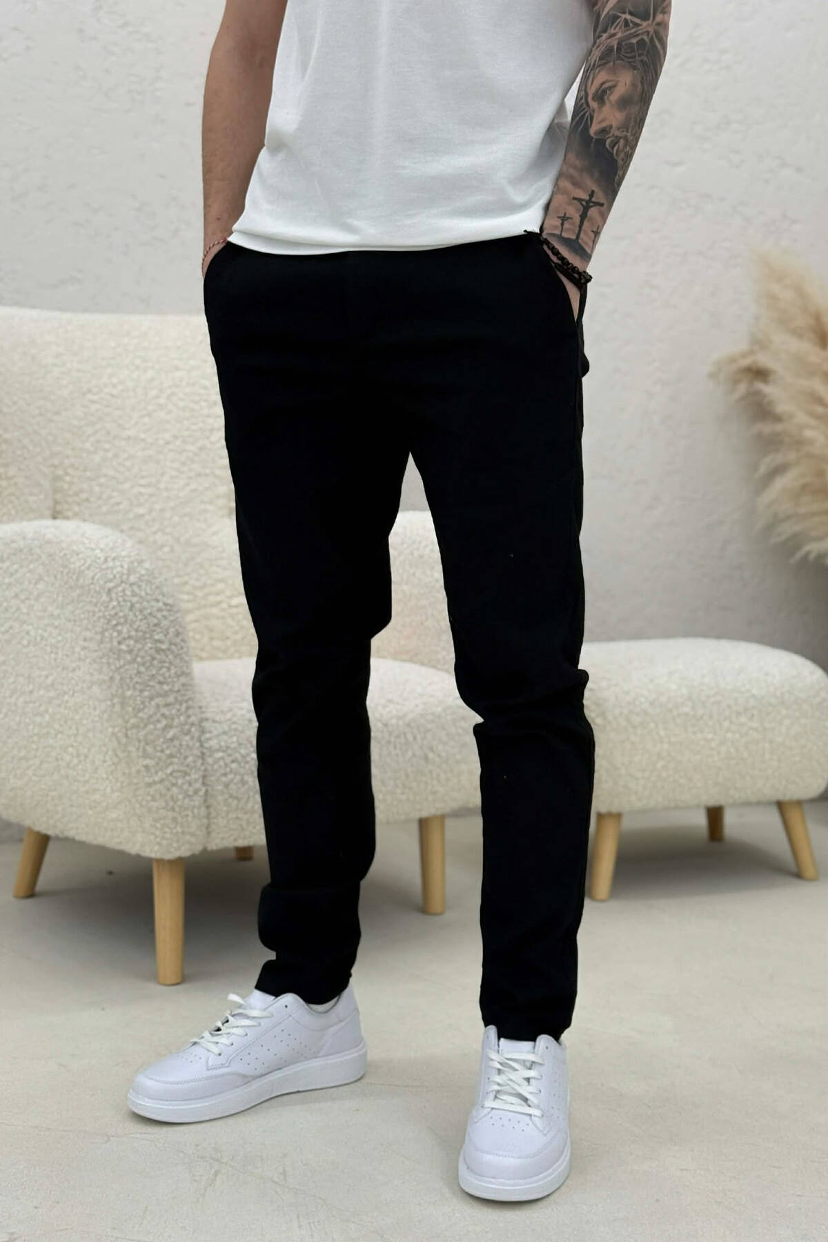 ONE COLOR SEMI ELASTIC WAIST MEN PANTS BLACK/ E ZEZE
