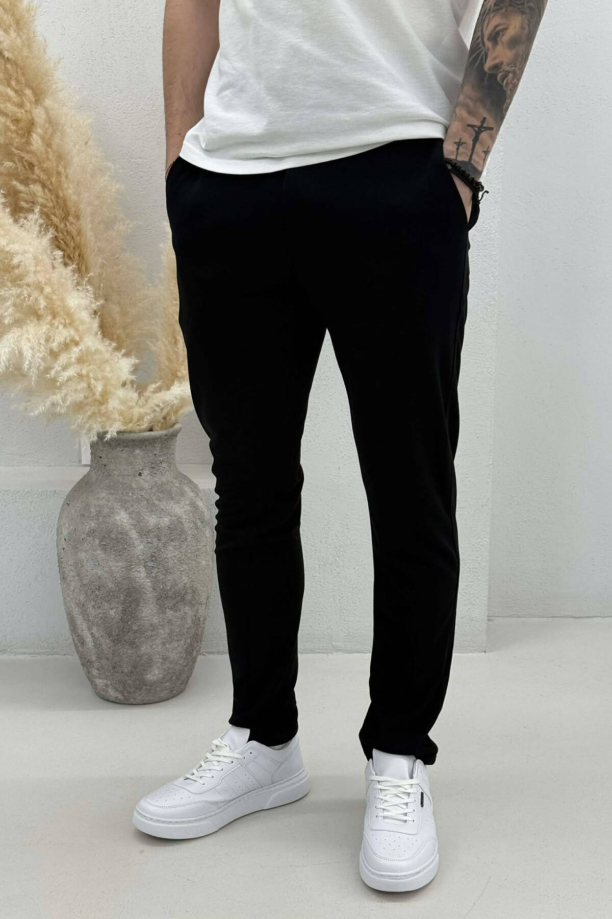 ONE COLOR LACING SEMI ELASTIC WAIST MEN PANTS BLACK/ E ZEZE