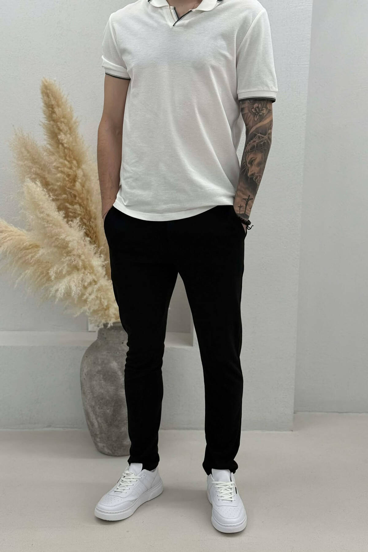 LACING WAIST SIMPLE MEN PANTS BLACK/ E ZEZE